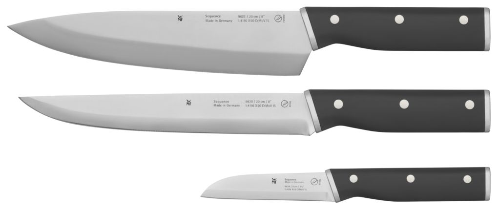 Виды ножей:Овощной нож 8 см, Разделочный нож 20 см, Шеф нож 20 см