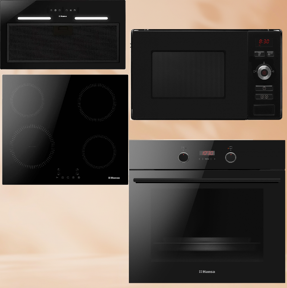 Модель:Комплект техники: Вытяжка Hansa OMP6553BGH-G + Индукционная панель Hansa BHI683200 + Встраиваемая микроволновая печь Hansa AMM20BESH + Духовой шкаф Hansa BOES68433