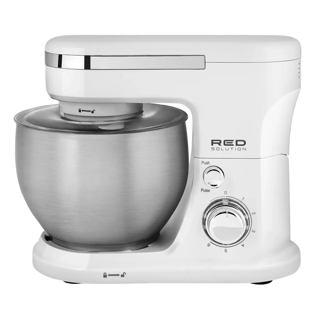 RED SOLUTION RFM-5371 — планетарный миксер с металлической чашей на 5 литров, тремя сменными насадками и 6 скоростями работы. Этот удобный помощник на кухне с мощностью 1100 Вт справится с замешиванием теста, взбиванием белков и приготовлением жидкой начинки для пирога. Насадка вращается одновременно вокруг своей оси и по окружности, благодаря чему ничего не остается на стенках. Функция «Импульсный режим» позволяет добиться максимальной однородности. А двойная защита двигателя обеспечит безопасность во время использования.