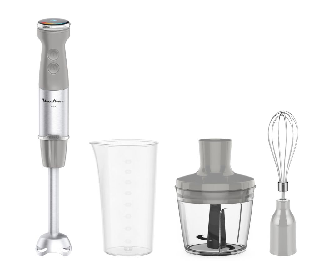 Погружной блендер Moulinex QuickChef DD673B10 — это сочетание высокой мощности и эргономичного дизайна, которое обеспечивает комфортную работу на кухне. Благодаря двигателю мощностью 1000 Вт блендер легко справляется с измельчением, смешиванием и приготовлением пюре, независимо от плотности продуктов.