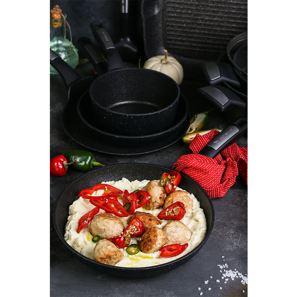 MEGASTONE PRO-5 Инновационное 5-слойное антипригарное покрытие с керамической крошкой.