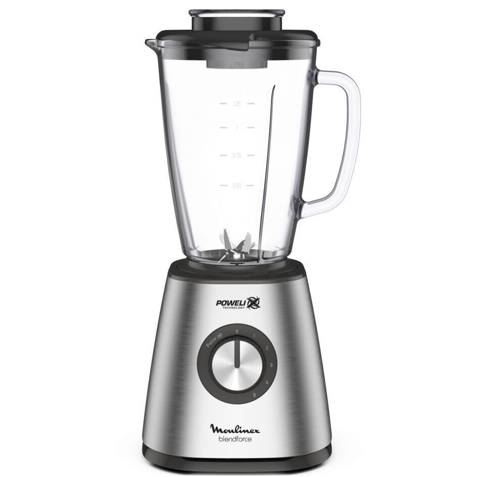 Стационарный блендер Moulinex LM439D10 сочетает в себе высокую производительность и надежность. Благодаря мощному двигателю на 800 Вт и прочным лезвиям Powelix, он обеспечивает быстрое и эффективное измельчение продуктов — от фруктов до орехов и льда.