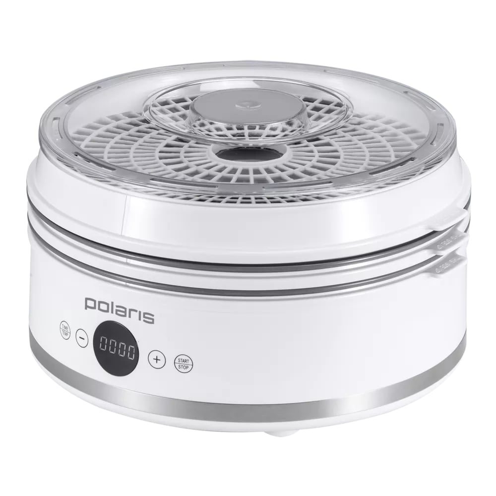 Сушилка для овощей и фруктов Polaris PFD 2808V в белом корпусе из пластика и состоит из 5 складных поддонов, которые позволяют сэкономить пространство при хранении
