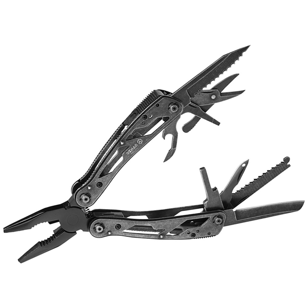Инструменты: Плоскогубцы, кусачки, нож с прямым лезвием, нож с серрейторной заточкой, ножницы, пила, миниатюрная плоская отвертка, крестовая отвертка, инструмент для зачистки проводов, открывалка для бутылок, консервный нож, держатель бит