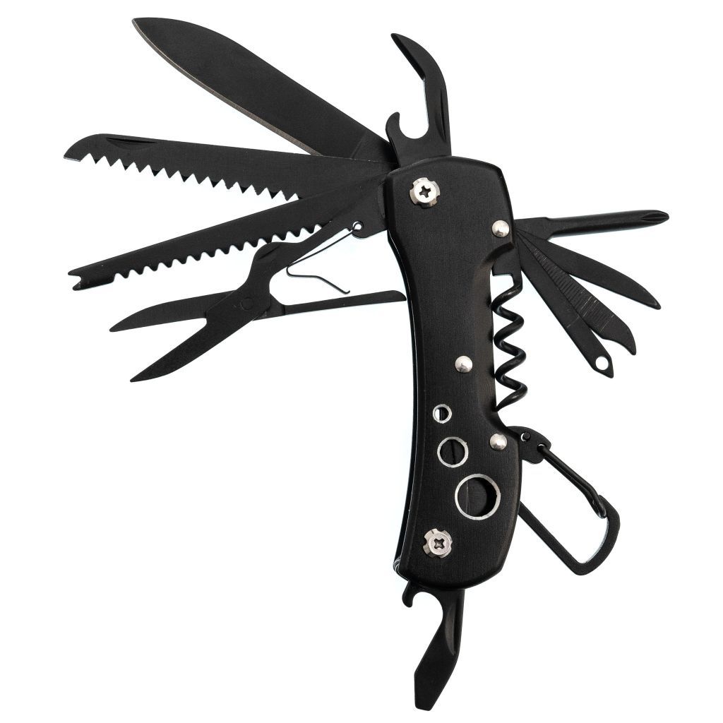 Этот универсальный мультитул станет вашим незаменимым помощником в любой ситуации! С его разнообразными инструментами вы сможете легко и быстро выполнять любые задачи, будь то на работе, дома или на отдыхе. Благодаря регулируемому карабину вы всегда будете иметь его под рукой - просто закрепите его на поясе, сумке или рюкзаке. Надежный и функциональный мультитул готов помочь вам в любых обстоятельствах!Функции мультитула: 1. Нож2. Пила3. Серрейторное лезвие 4. Ножницы5. Консервная открывалка 6. Бутылочная открывашка 7. Шлицевая отвёртка 8. Пилка для ногтей8. Инструмент для очистки ногтей9. Игла10. Крестовая отвёртка11. Штопор 12. Шило13. Регулируемый карабин