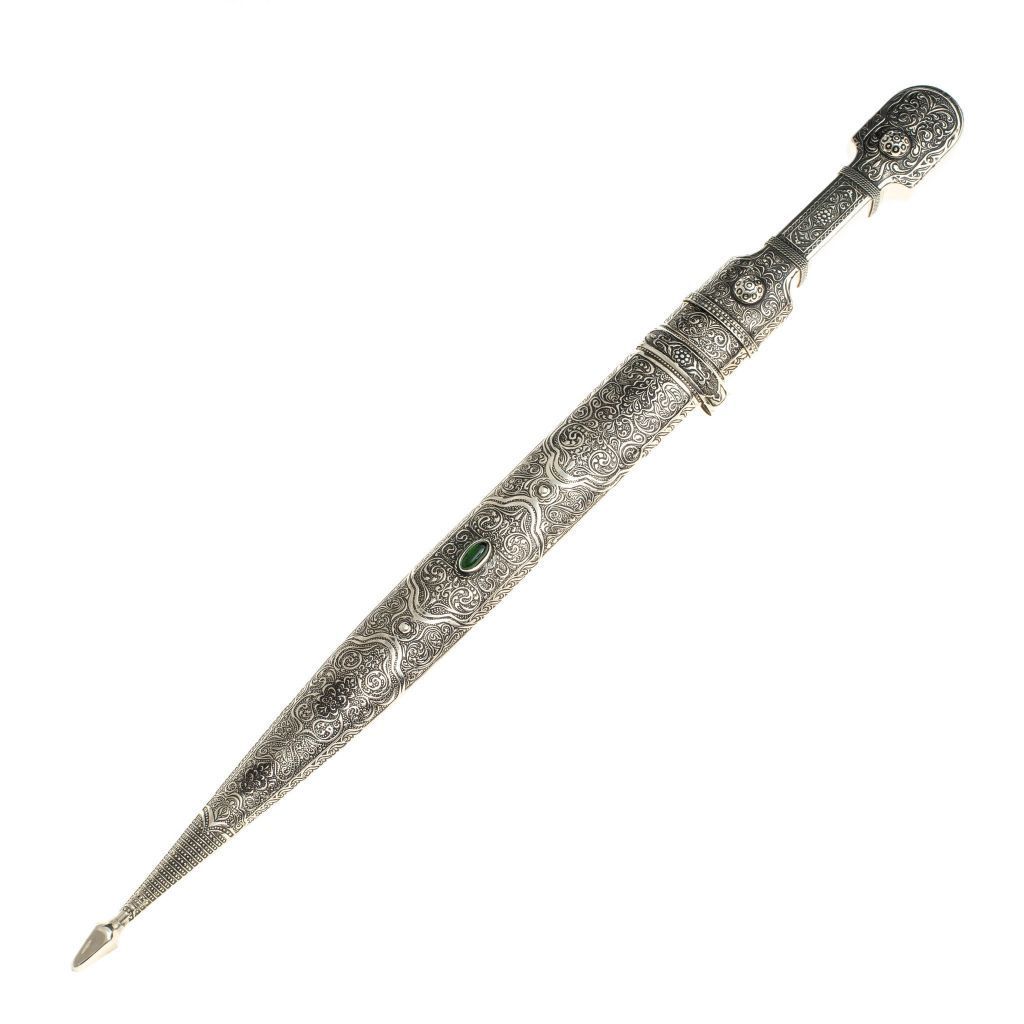 Этот Сувенирный кавказский кинжал не только станет оригинальным подарком для вашего близкого человека, но и прекрасно впишется в интерьер вашего дома или офиса. Качественные материалы и тщательная работа мастера делает этот кинжал по-настоящему выдающимся аксессуаром. Подчеркните свой индивидуальный стиль с помощью этого элегантного предмета!Изысканные ножны для ножа украшены великолепным кавказским орнаментом, который выполнен с использованием техник чеканки и гравировки. Этот детальный ручной труд придает изделию особую изящность и уникальность.