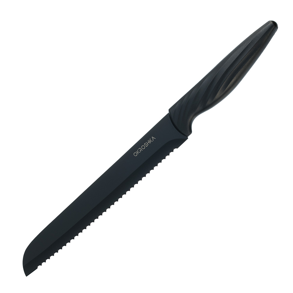 Нож кухонный хлебный Okroshka Crouton 19.9 см, сталь 5cr15mov, рукоять пластик, черный 5Cr15MoV Ножиков | V4.Ru: Маркетплейс