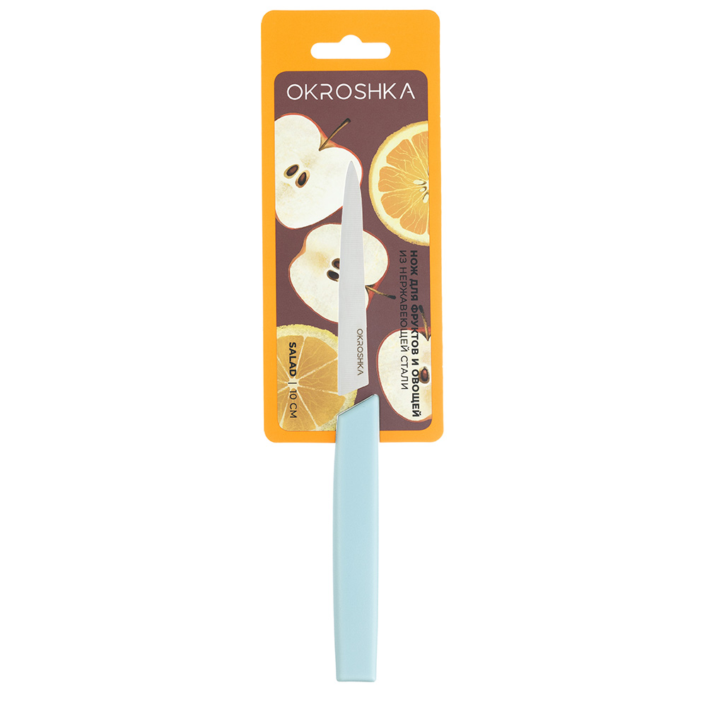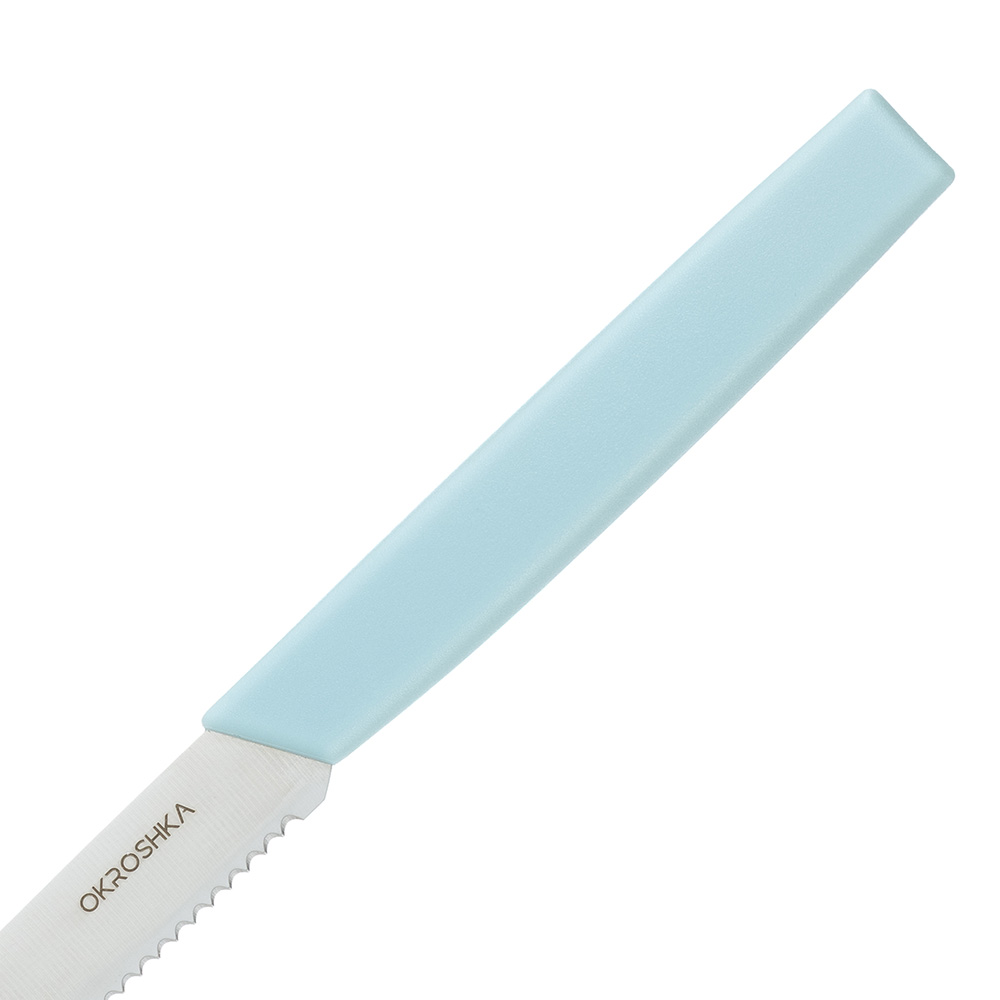 Нож кухонный серрейтор для фруктов и овощей Okroshka Salad 10 см, сталь 5cr15mov, рукоять пластик, голубой