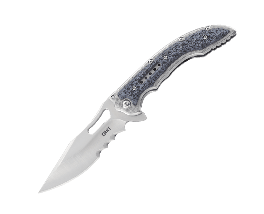 Складной нож CRKT Fossil™ BLACK WITH VEFF SERRATIONS™, сталь 8Cr13MoV, рукоять сталь 2Cr13, накладки G10