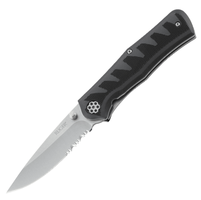 Полуавтоматический складной нож Ruger® Knives Crack-Shot™ Compact, сталь 8Cr13MOV Stonewashed Combo, рукоять термопластик GRN