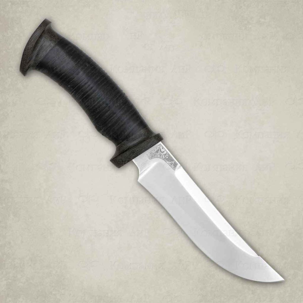 Средний, универсальный, красивый и прочный нож с хищным клинком восточной ятаганной формы, имеющим вогнутые линзовидные спуски на две трети ширины клинка, образующие тонкое, прекрасно режущее лезвие. Весьма серьезный инструмент. Клинок толщиной обуха в 4 мм имеет прогнутое двустороннее фальшлезвие, которое может быть использовано для рубки мелких костей и хрящей. Эргономичная форма рукояти удобно и прочно ложится в ладонь. Монтаж клинка сквозной, неразборный. На навершии рукояти имеется красивое расширение в форме грибка, которое в сочетании с приличной гардой позволяет уверенно и безопасно работать ножом. «Росомаха» отличный выбор для большинства видов работы в лесу.