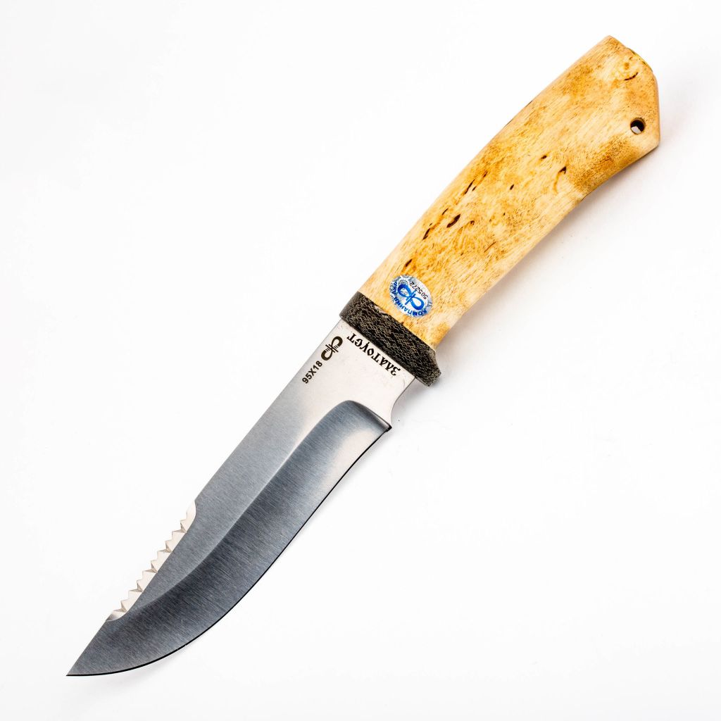 Стильный нож Стрелец (карельская береза, 95х18) - идеальное решение для туризма или охоты. Модель отличается легкостью и высокими показателями прочности. Классическая форма только придает изделию удобства во время использования. Нож для чистки рыбы от чешуи поможет без проблем обработать тушу и даст возможность сразу же начать ее готовить. Стоит также отметить привлекательное дизайнерское решение. Прямо на поверхности клинка нанесена гравировка, которая, наверняка, понравится будущему владельцу. Нож Стрелец, Златоуст стоит приобрести как себе, так и в качестве подарка. Учитывая доступную стоимость позволить себе изделие сможет каждый.