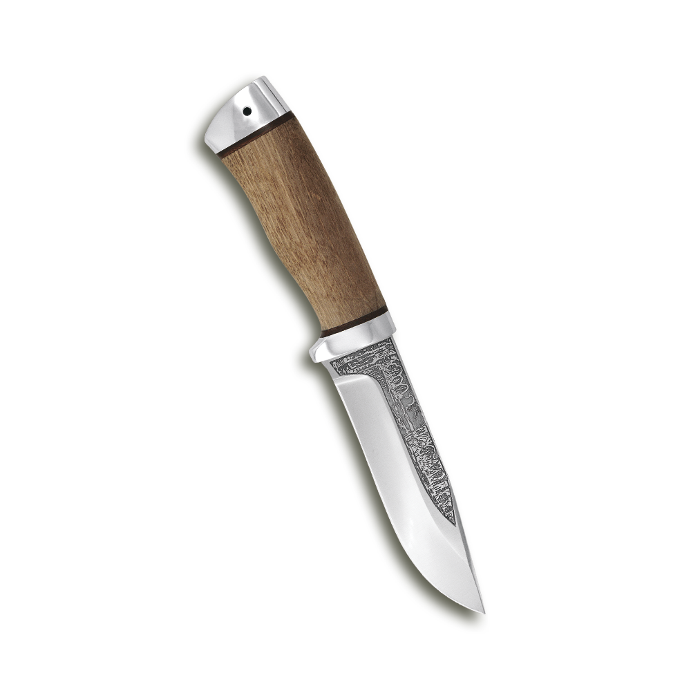 Средний универсальный, легкий и прочный нож с клинком, имеющим популярный обушок с прямым скосом. Пологие вогнутые линзовидные спуски от середины клинка образуют тонкое, прекрасно режущее лезвие. Демонстрирует отличные режущие качества. Толщина обуха в 2,4 мм позволяет оставить широкую голомень, что придает клинку дополнительную прочность. Эргономичная форма рукояти уверенно и прочно ложится в любую ладонь, даже в рукавице. Оптимальной величины гарда не дает соскользнуть пальцам при резах от себя. Монтаж клинка сквозной, неразборный. На навершии рукояти имеется отверстие под темляк. Отличный выбор для большинства видов работы в лесу.