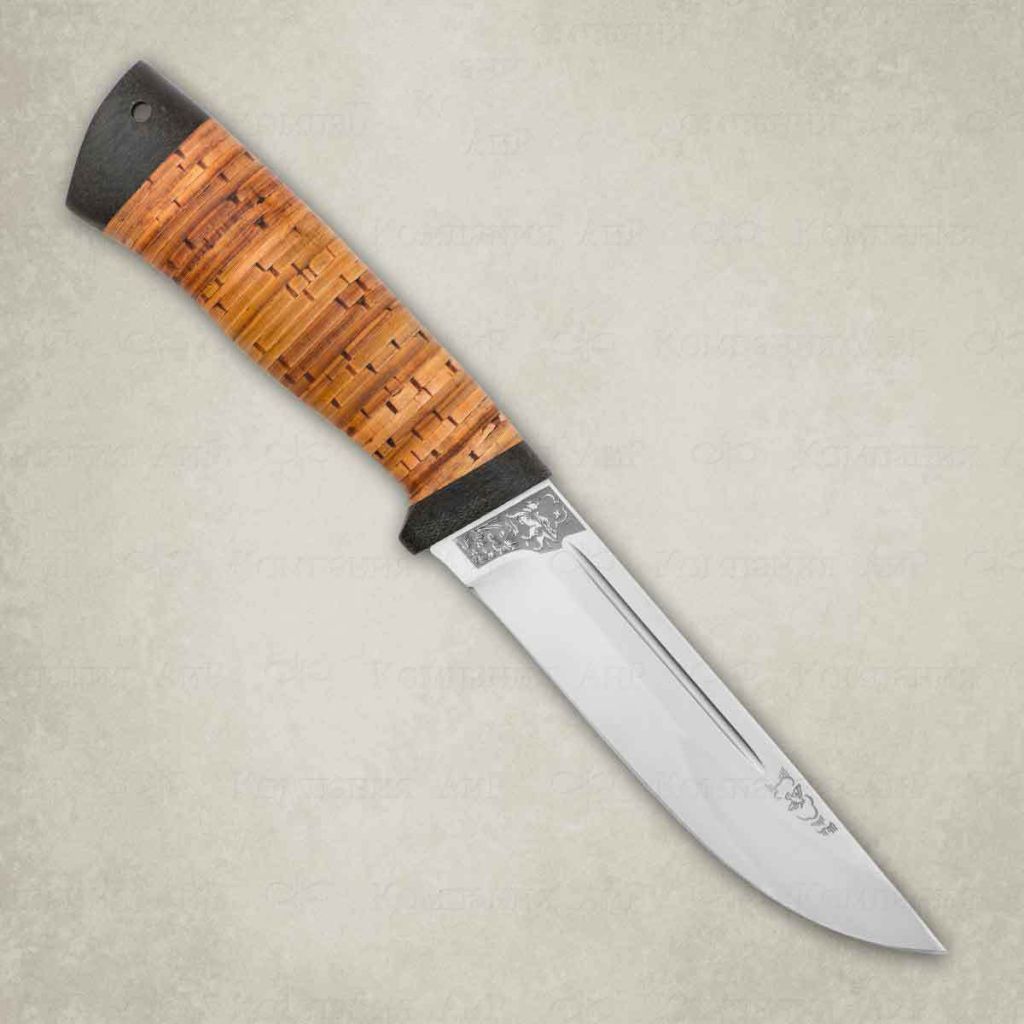 Небольшой универсальный, легкий и прочный нож классической формы с нешироким клинком, имеющим вогнутые линзовидные спуски, образующие тонкое, прекрасно режущее лезвие. Демонстрирует отличные режущие качества. Поэтому в умелых руках становится весьма серьезным инструментом. Клинок с толщиной обуха в 2,4 мм имеет узкие долы с обеих сторон, что придает ему дополнительную прочность. Классическая форма рукояти подкупает: она удобна даже для большой руки, уверенно и прочно ложится в любую ладонь. А оптимальной величины гарда не дает соскользнуть пальцам при резах от себя. Монтаж клинка сквозной, неразборный. Отличный выбор для большинства видов работы в лесу. Пользуется неизменной популярностью у покупателей.