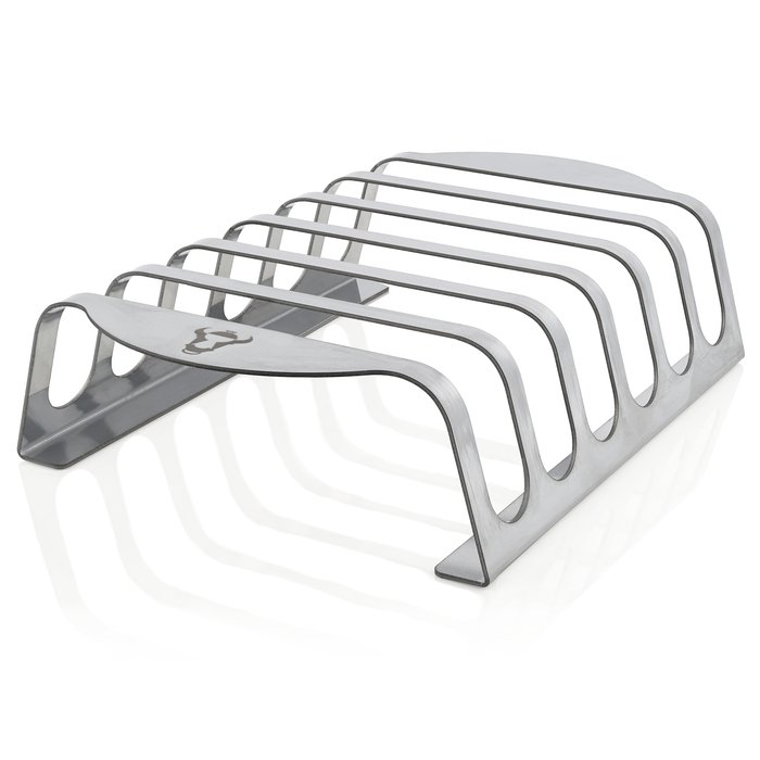 Подставка с 6 слотами - уникальный гаджет для удобного приготовления ребер на газовом и угольном гриле или просто в духовке. Благодаря удлиненным боковым поверхностям подставку можно легко транспортировать и размещать на решетке.