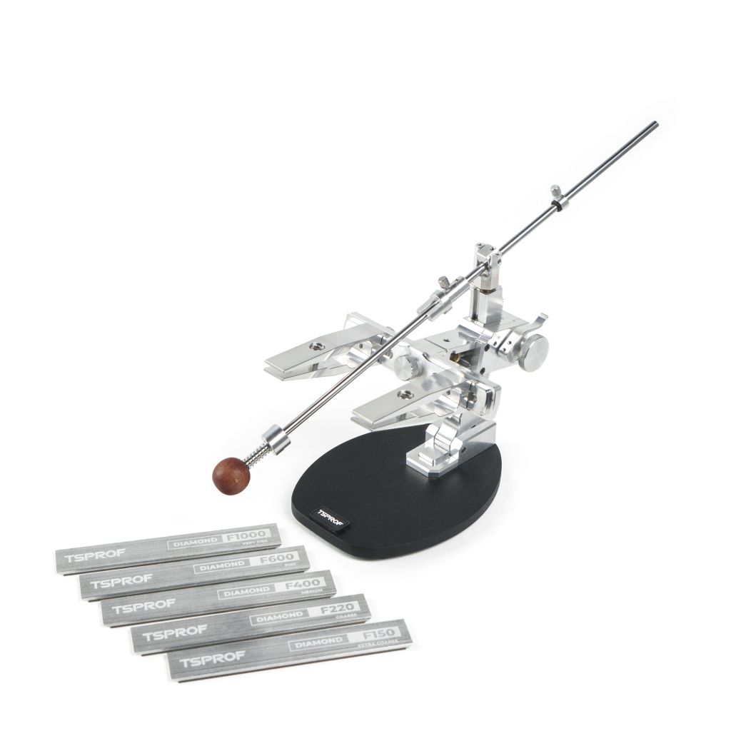 Набор для заточки TSPROF Kadet TGE представляет собой профессиональное решение с полностью обновлённым шарнирным узлом Kadet Glide. Благодаря этому компоненту, движение направляющей стало ещё более плавным, а управление — интуитивным и точным. Версия ТGE выполнена без анодирования, подчеркивая строгую и технологичную эстетику станка.