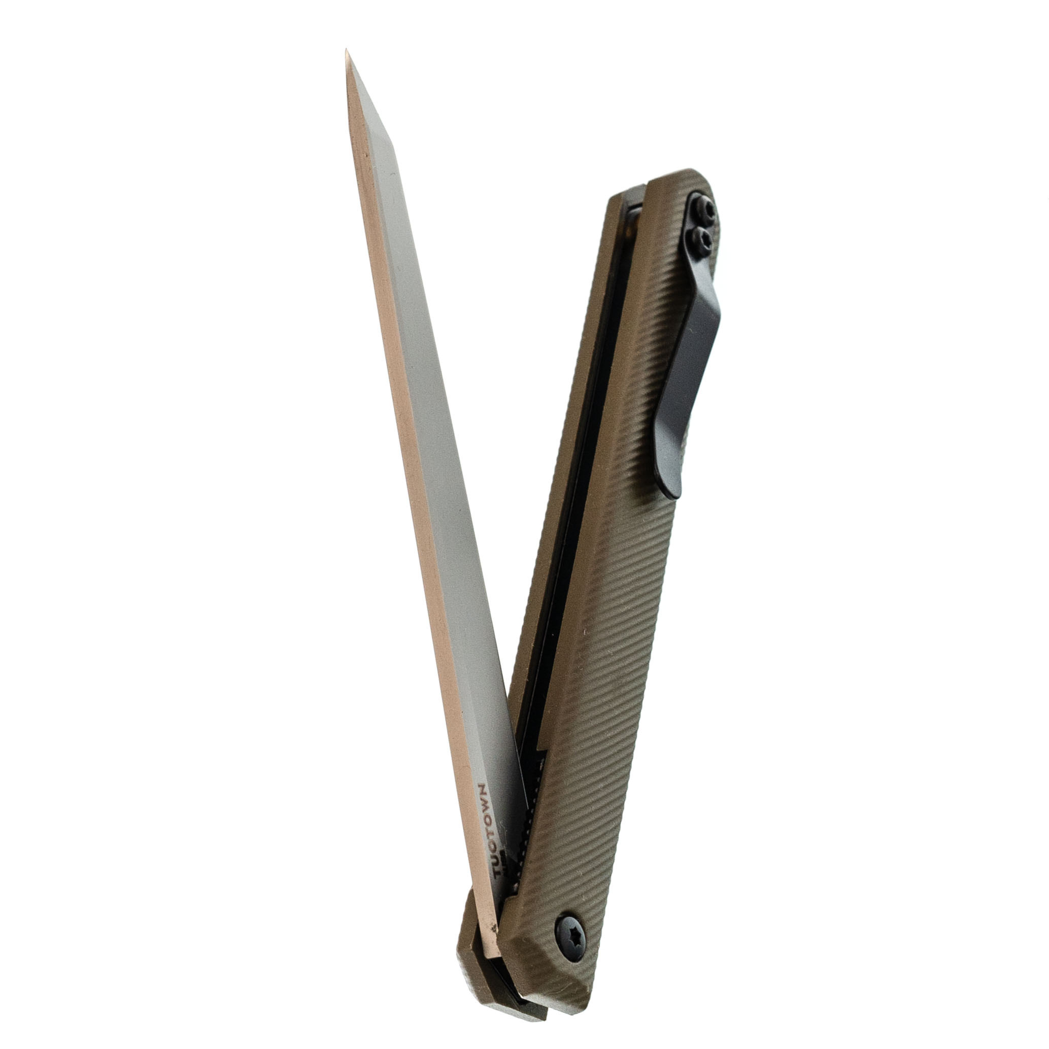 BDT-TUO-GS - бюджетный складной нож среднего размера от TuoTown в формате "щепки": узкий, длинный и максимально ненавязчивый. В кармане он теряется так же легко, как обычная ручка, поэтому носить его удобно даже там, где объёмные модели быстро надоедают. По характеру это спокойный EDC для бытовых дел - открыть упаковку, подрезать картон, поправить стяжку, сделать аккуратный надрез там, где важна точность.