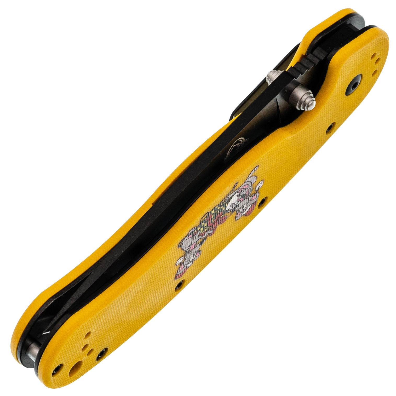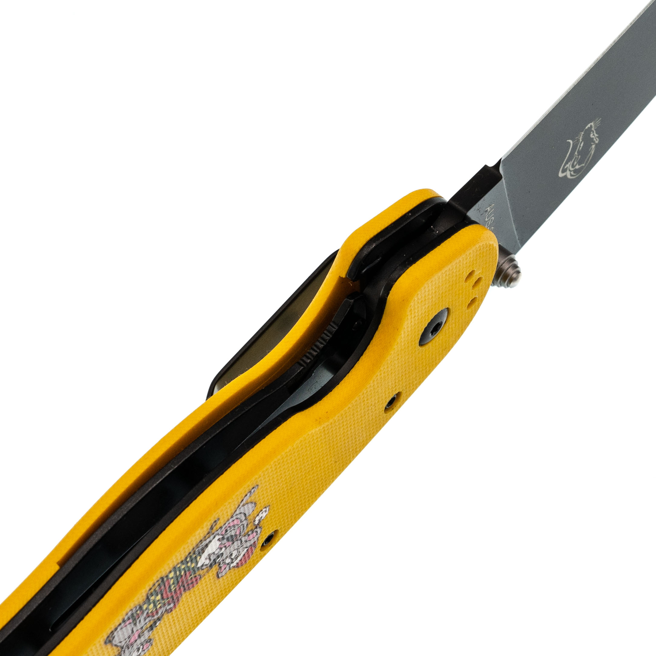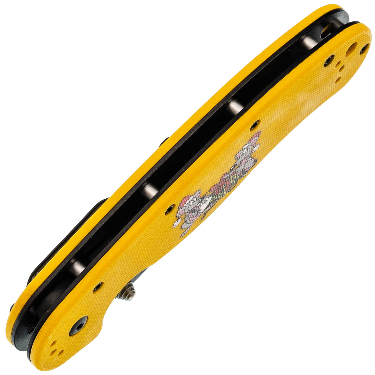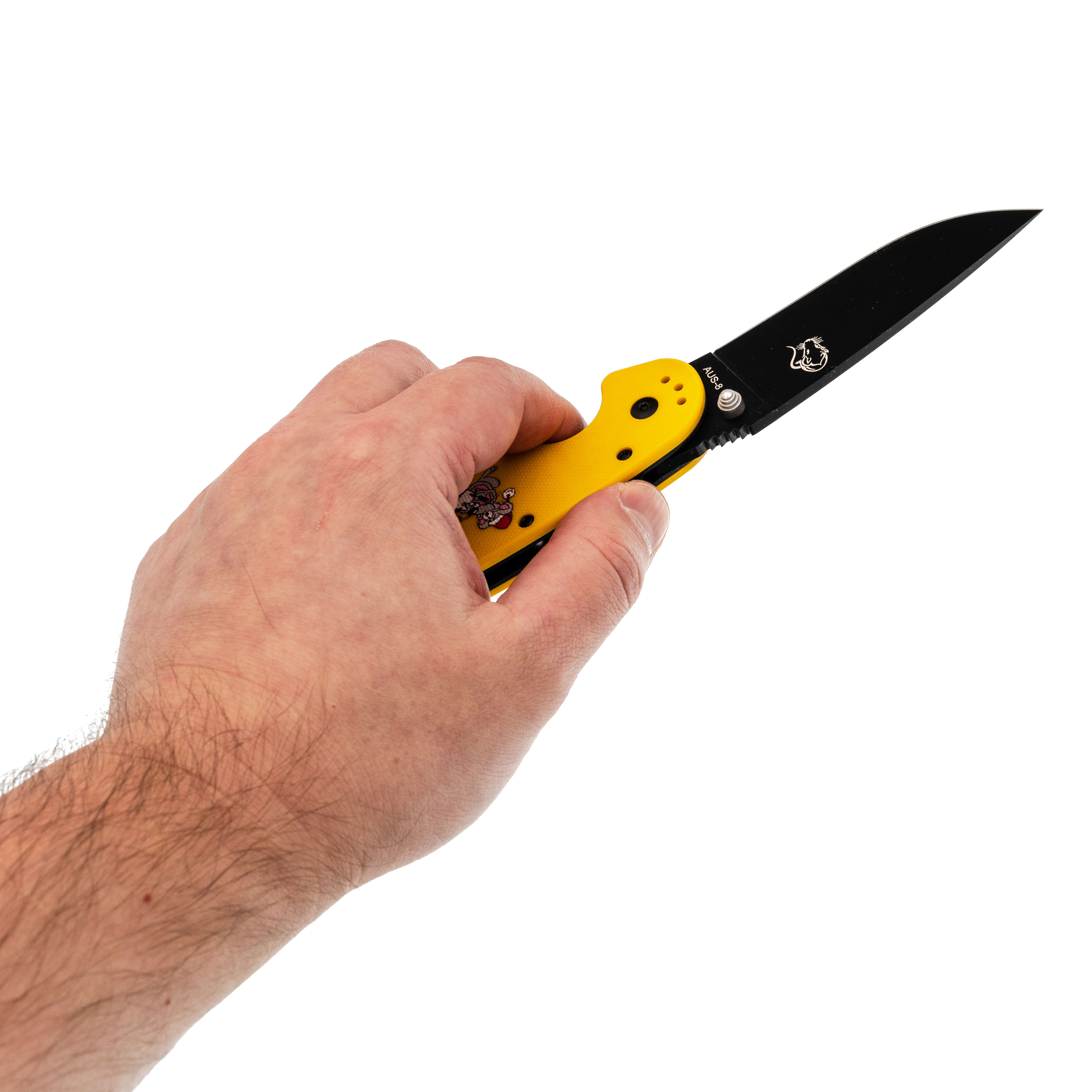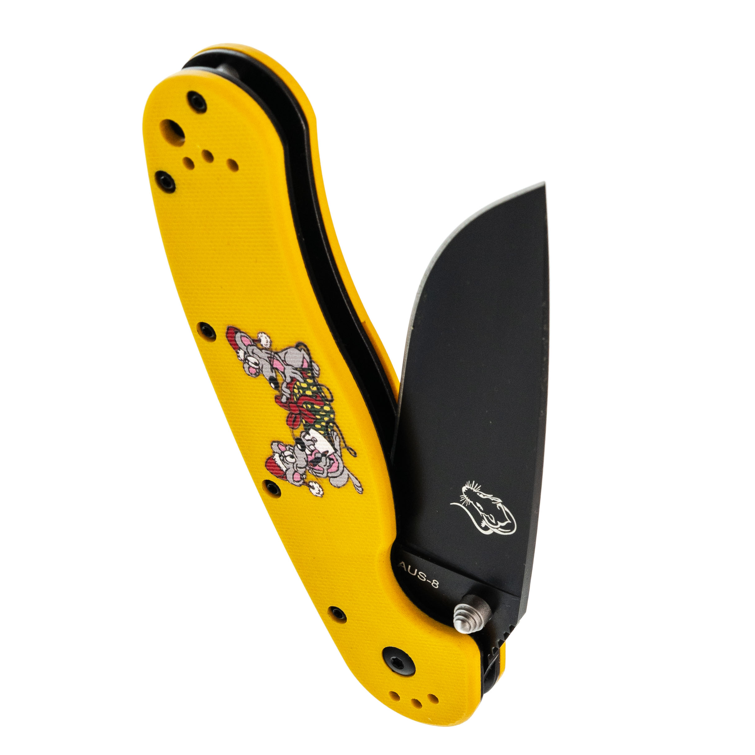 Рукоять эргономичная, уверенно сидит в ладони. На накладках - рисунок с крысами, которые празднуют Новый год. Деталь добавляет настроения, не отвлекая от работы. Клипса переставляется во все четыре положения.