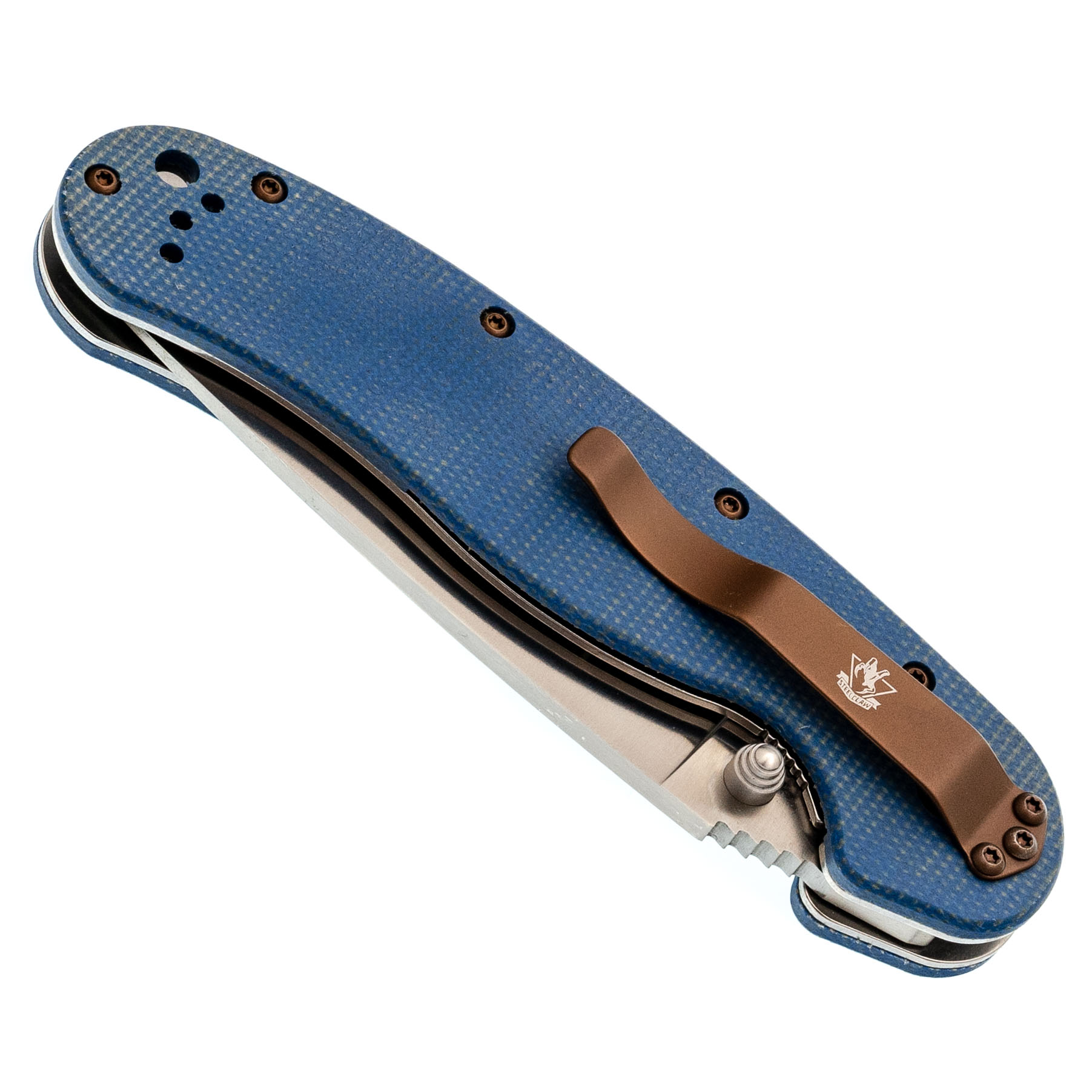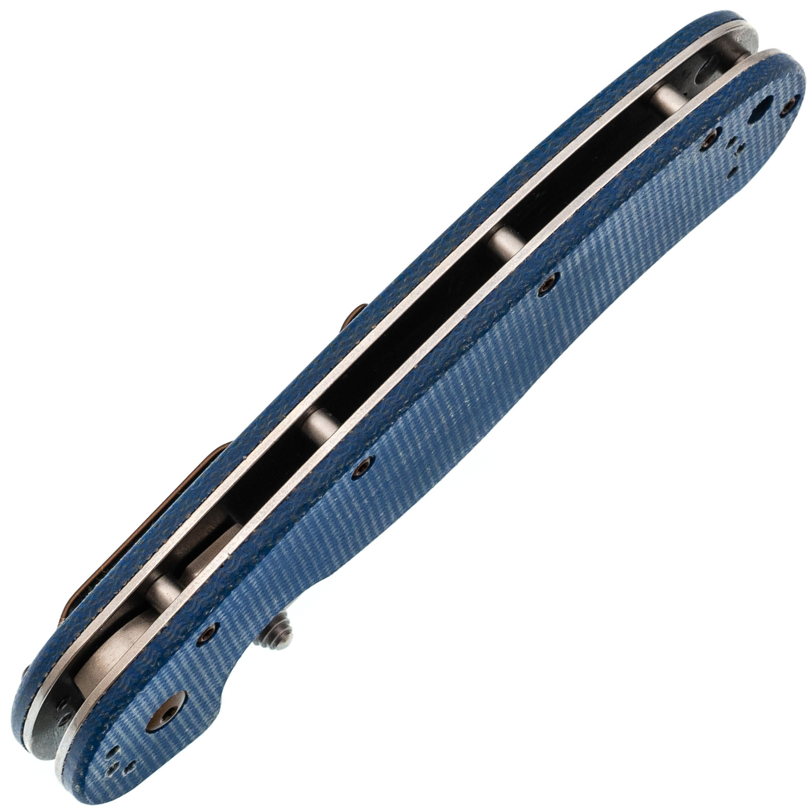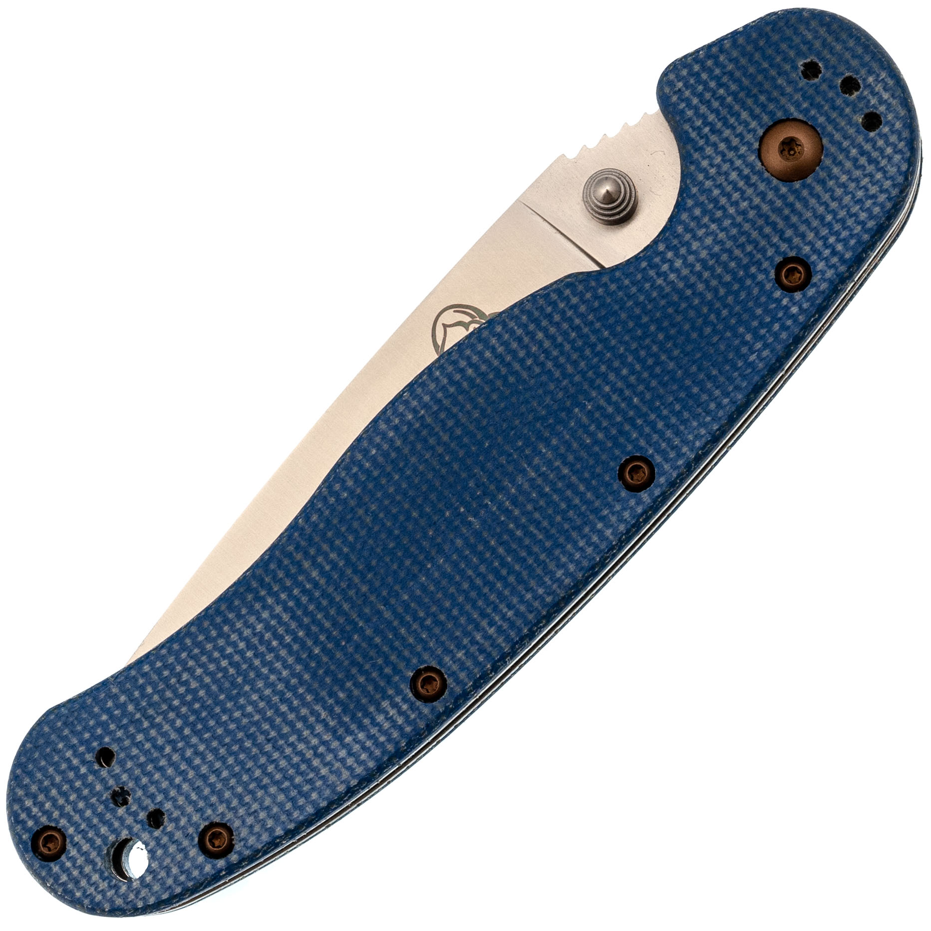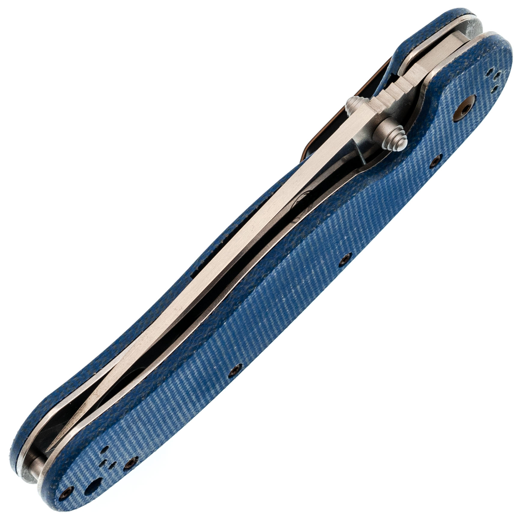 Рукоять из микарты синего цвета - тёплая на ощупь, хорошо держит хват, со временем приобретает индивидуальный оттенок.