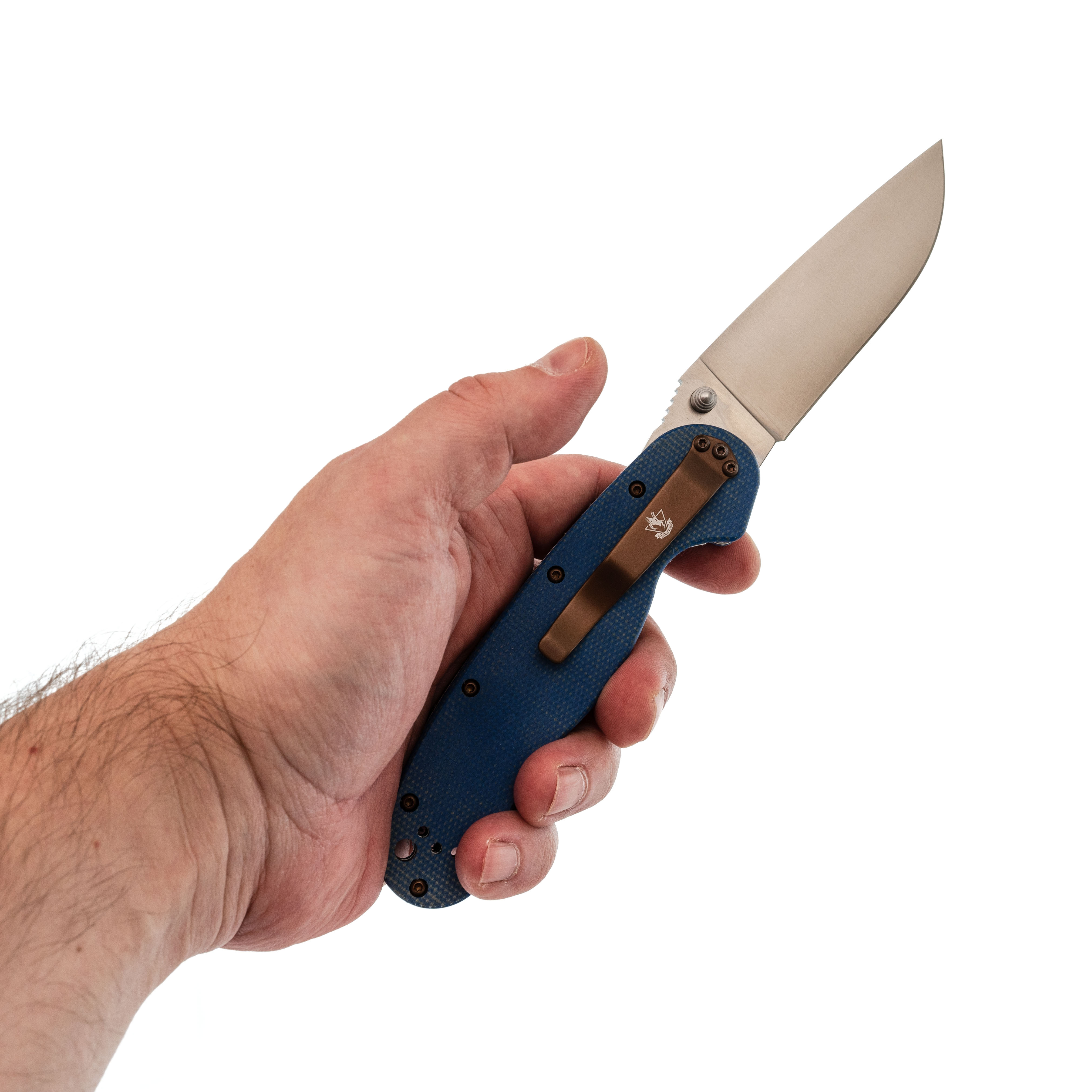 Микарта хорошо заполняет ладонь и не скользит. Форма рукояти позволяет менять хват без дискомфорта. Клипса переставляемая, подстраивается под любой вариант ношения.