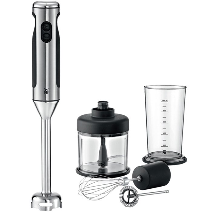 Погружной блендер серии LINEO от компании WMF является многофункциональным прибором, позволяющий в считанные секунды нарезать и измельчить зелень, овощи и фрукты, смешивать жидкости, готовить напитки и детское питание. Преимуществом погружного блендера является его компактность и небольшой вес. Прибор занимает мало места, его можно разместить на столе, используя специальную подставку, а можно повесить на стену. Блендер обладает функцией турбоскорости при максимальной мощности в 700 Ватт. Эргономичная рукоять и кнопка выключения обладают противоскользящим эффектом. В дополнение прилагается чаша из прочного пластика, объемом 1 л с мерной шкалой. Великолепный завтрак с серией LINEO от компании WMF. Кулинарная коллекция помощников на кухне этой серии довольно разнообразна и многогранна. Она сочетает в себе все необходимые кухонные принадлежности, какие только возможно вообразить, практично и превосходно дополняет Ваши кулинарные фантазии. Кофеварки, термосы, чайники, тостеры – все, что необходимо для безупречного завтрака.