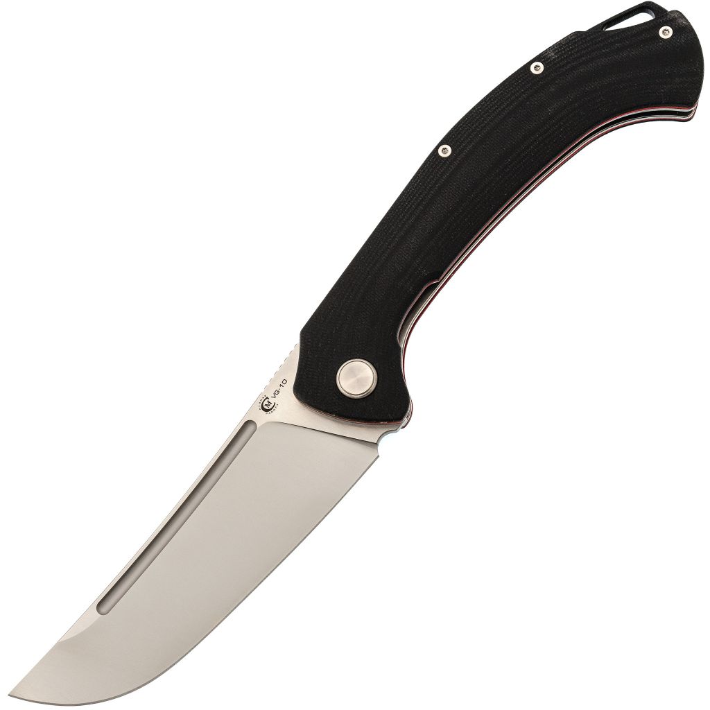 Пчак Узбекский от мастерской Сёмина — это крупный складной нож с восточными мотивами, воплощёнными в современной форме и с применением современных технологий. Он отлично подойдёт для использования в качестве походного кухонного ножа, а также заинтересует любителей ножей с этническим дизайном.Клинок выполнен из стали VG-10, японской нержавеющей стали, разработанной специально для кухонных ножей. Она долго держит заточку и устойчива к коррозии. Благодаря высоким прямым спускам и широкому клинку нож обладает превосходными режущими характеристиками. Также клинок украшен декоративным долом, который можно использовать для двухручного открытия ножа.Рукоять имеет удобную изогнутую форму с накладками из стеклотекстолита G10. Этот материал идеален для кухонного ножа: он не боится влаги и не впитывает запахи. На рукояти предусмотрена карманная клипса для удобного ношения. Замок Liner-Lock обеспечивает надёжность фиксации, что вполне достаточно для кухонного или походного использования.Нож комплектуется чехлом из натуральной кожи, который легко подвешивается на пояс. Чехол обеспечивает удобное и безопасное хранение ножа в походных условиях.