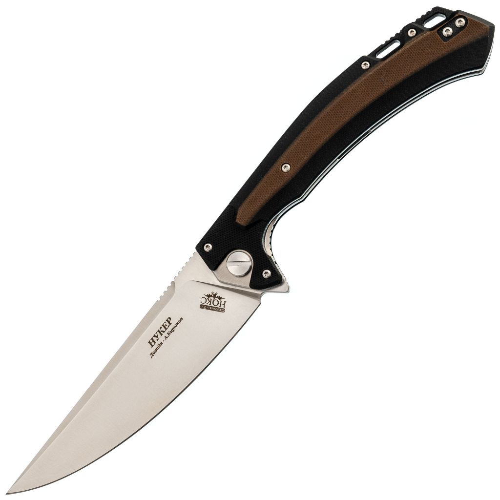 Образ складного ножа “Нукер”, арт. 347-109406, вдохновлён традиционным повседневным ножом узбеков и уйгур - пчаком. Характерные черты представленного в наличии “Нукера” – высокие спуски и лезвие, плавно восходящее к острию. Его можно рассматривать и как повседневный инструмент, и как треккинговый нож. Маленьким назвать атрибут нельзя. Длина лезвия составляет 120 мм, поэтому это многофункциональный инструмент, который пригодится для отдыха и для работы.