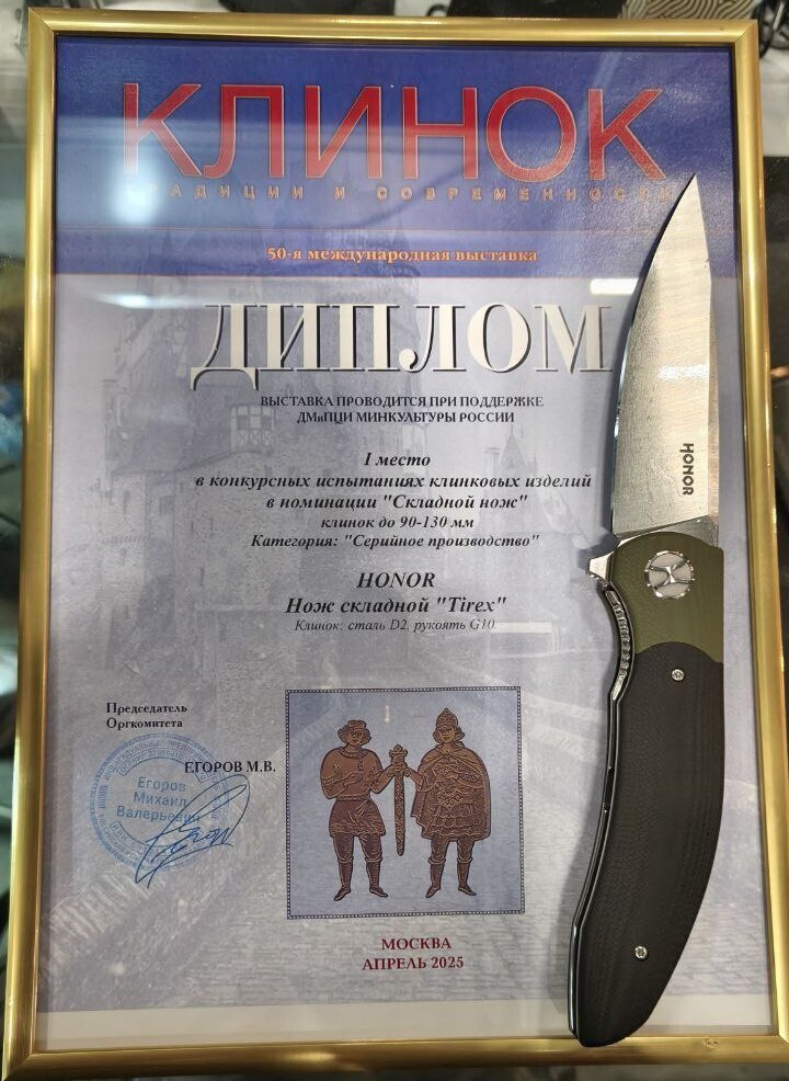 Tirex от HONOR - собственная разработка Nozhikov, созданная на базе многолетнего опыта в теме складных инструментов. Задача была ясной: получить надёжный универсал для ежедневных задач - от распаковки и реза плотных материалов до работы с продуктами. Длинный клинок, флиппер и стабильная механика делают модель удобной в быту и на выезде.