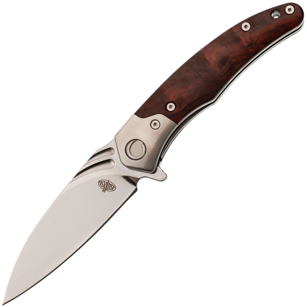 Рукоять выполнена в эргономичной форме, которая отлично ложится в руку и не вызывает усталости при длительном использовании. Деревянные накладки дают дополнительное сцепление, а наличие клипсы позволяет удобно носить нож в кармане или на поясе, всегда имея его под рукой.
