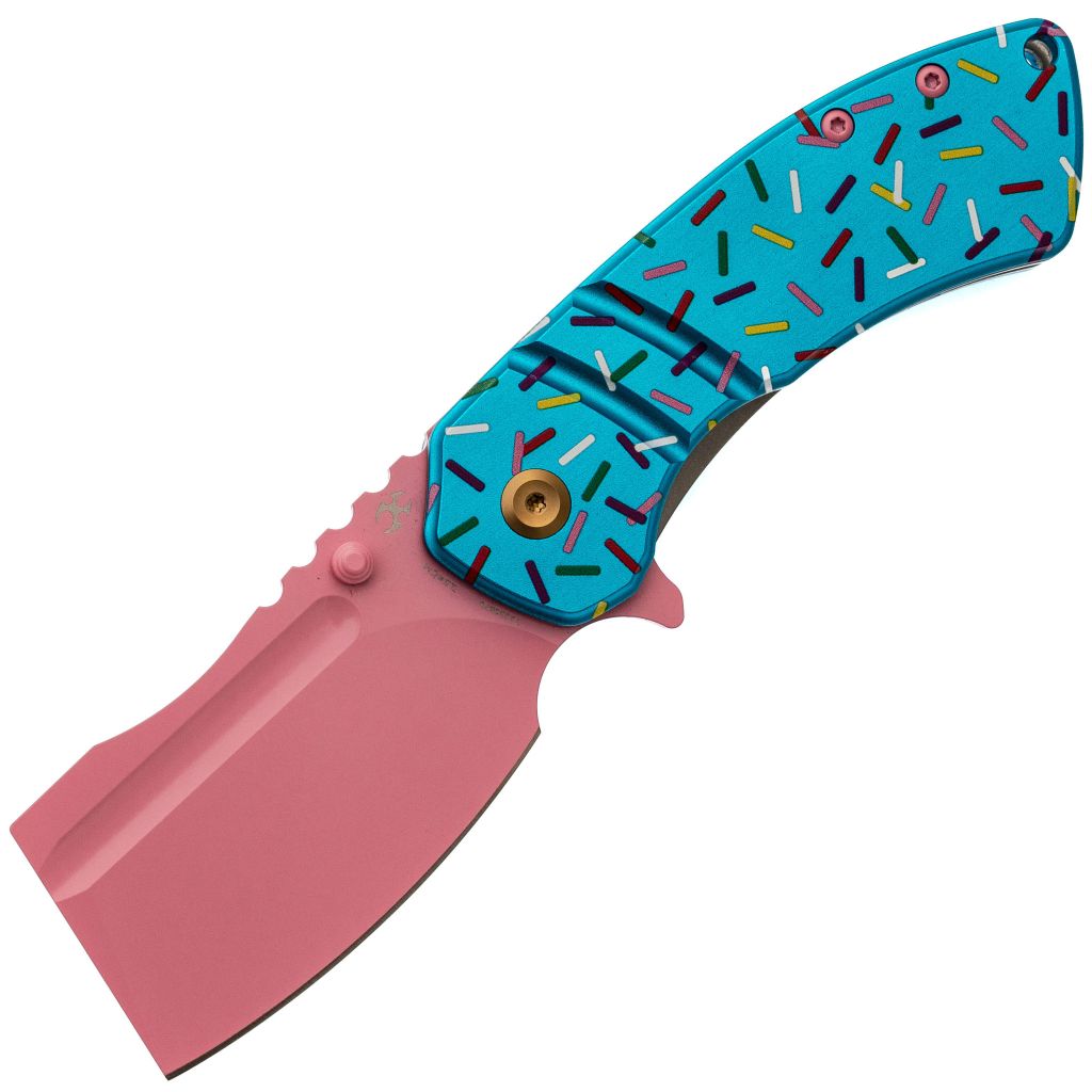 Korvid XL отличается контрастной внешностью: клинок покрыт розовым матовым напылением, а синяя рукоять стилизована под глазурь с посыпкой. Такой визуальный подход превращает инструмент в дизайнерский акцент, но при этом он не теряет своей утилитарной сути. Каждый элемент конструкции продуман как с точки зрения эстетики, так и удобства в использовании.