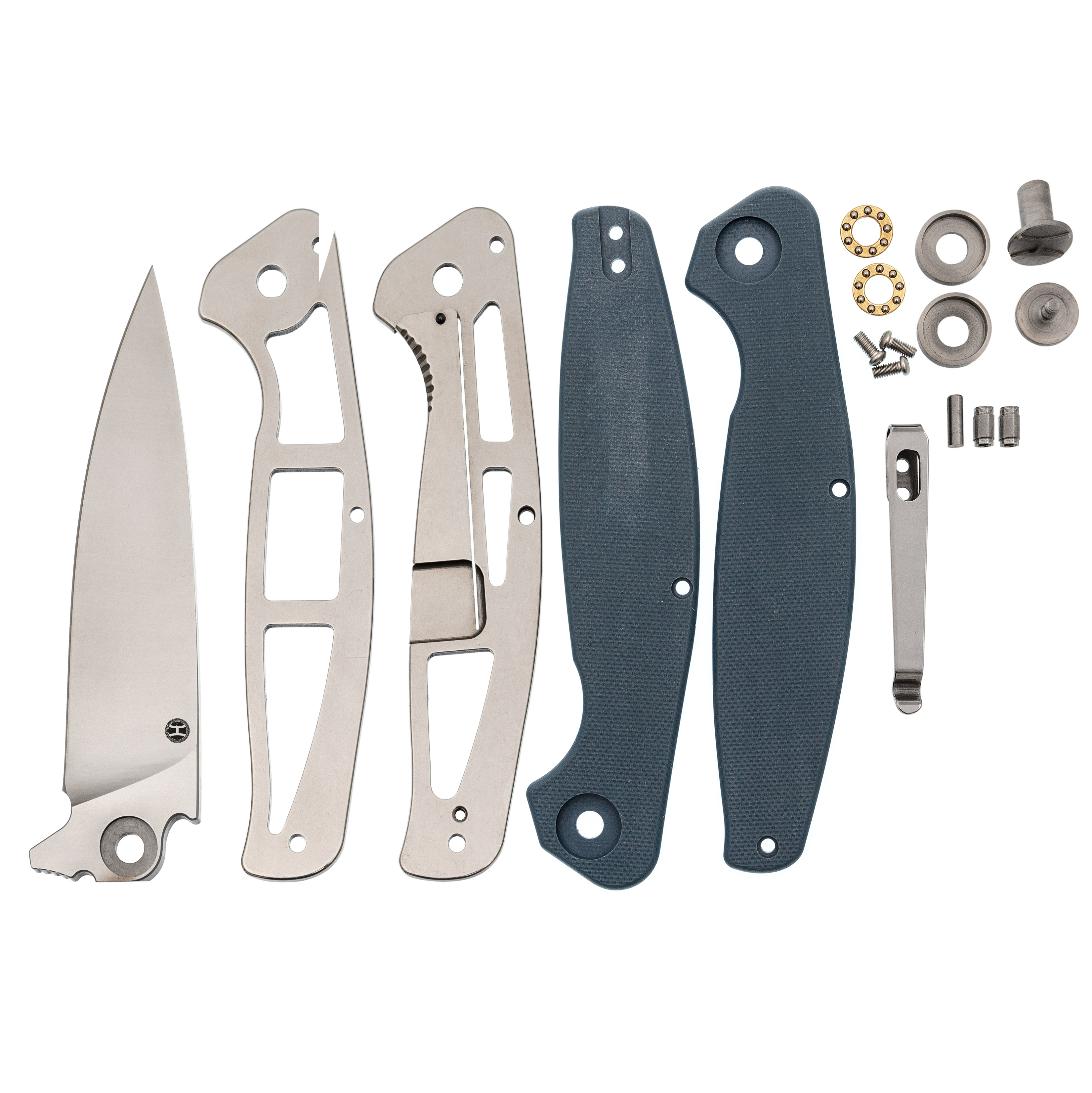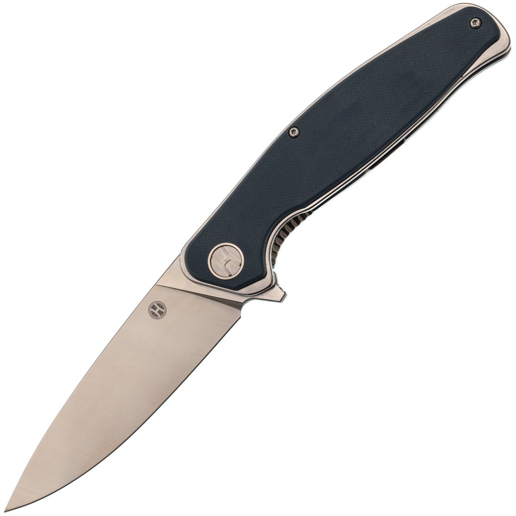 Рукоять построена на двух стальных лайнерах толщиной 2 мм - это основа жёсткости. Один из лайнеров выполнен как Liner-Lock, и его увеличенная толщина даёт сразу несколько плюсов: замок не проскальзывает, площадь контакта с клинком больше, а ресурс работы до появления выработки исчисляется годами. В осевом узле - стальные подшипники. Они выбраны не случайно: в отличие от керамических, они лучше переносят попадание пыли и мелкого песка, их легче обслуживать, и они дают ту же плавность открывания. Плавник на клинке расположен так, что его можно поддеть подушечкой указательного пальца или большим - никаких лишних движений. Клипса двухсторонняя, позволяет перенастроить ношение под левую или правую руку, при этом нож в кармане утоплен так, что не цепляется за край сумки или ремень.