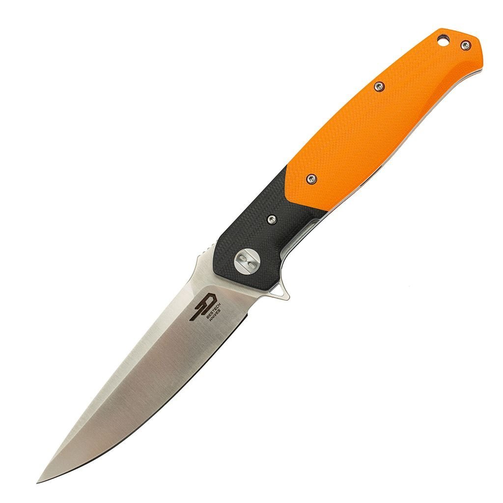 Складной нож Bestech Swordfish Оранжевый - этот высокопроизводительный и ценный фолдер изготовлен по высоким стандартам Bestech с использованием проверенных временем материалов, таких как G-10 и инструментальная сталь D2. Нож Swordfish - это экономный, средний нож с узким лезвием для нарезки и цельной рукоятью, обеспечивающей превосходный и удобный хват. Это тот нож, который вы всегда будете рады найти в своем снаряжении и не захотите исключить из своей ротации EDC. Сатинированное лезвие из инструментальной стали D2 в стиле drop point. Открывалка Flipper с шарниром на шарикоподшипниках. Черные чешуйки рукояти из G-10 на стальных накладках. Стальной замок с вырезом для доступа. Правосторонняя глубокая карманная клипса для ношения в положении tip-up.