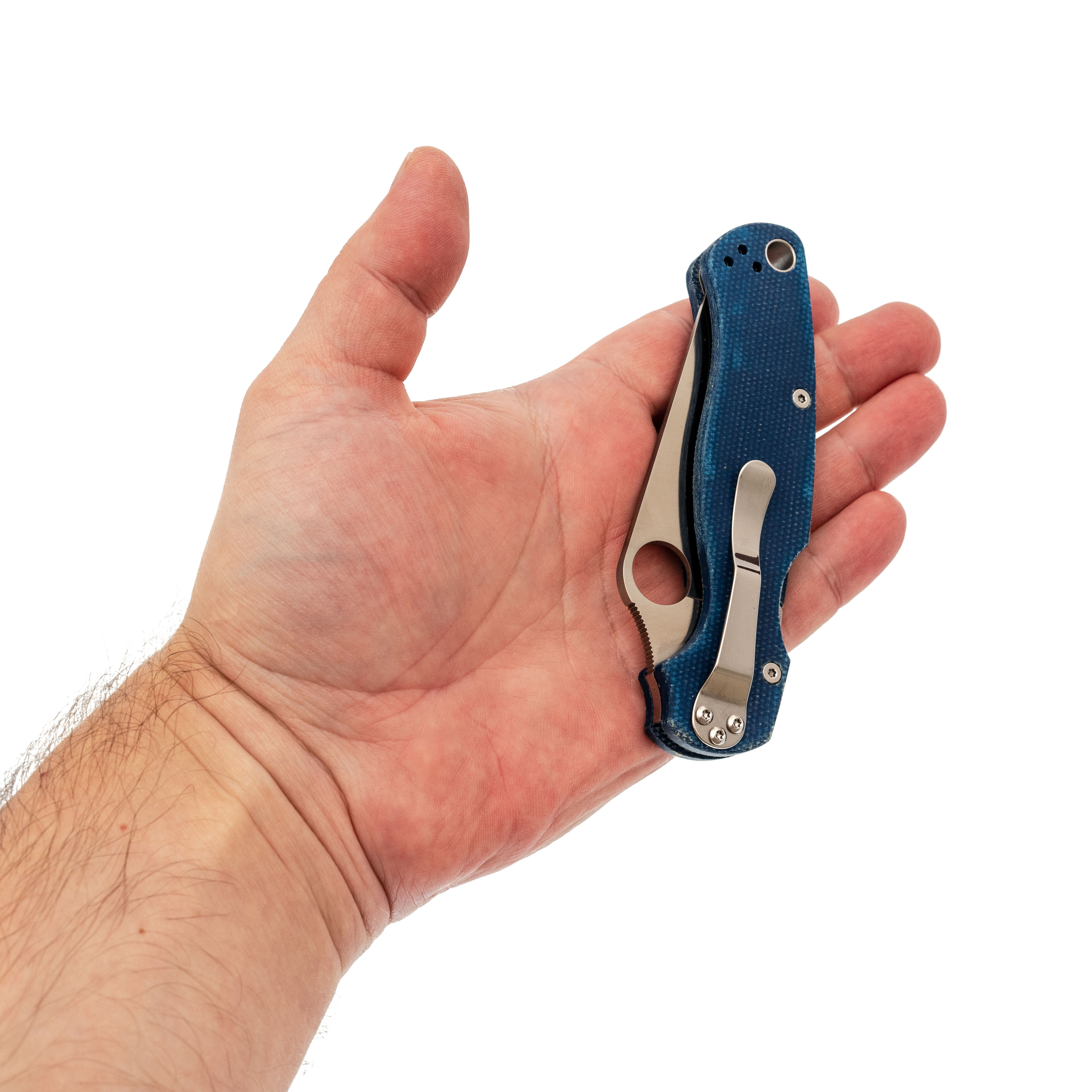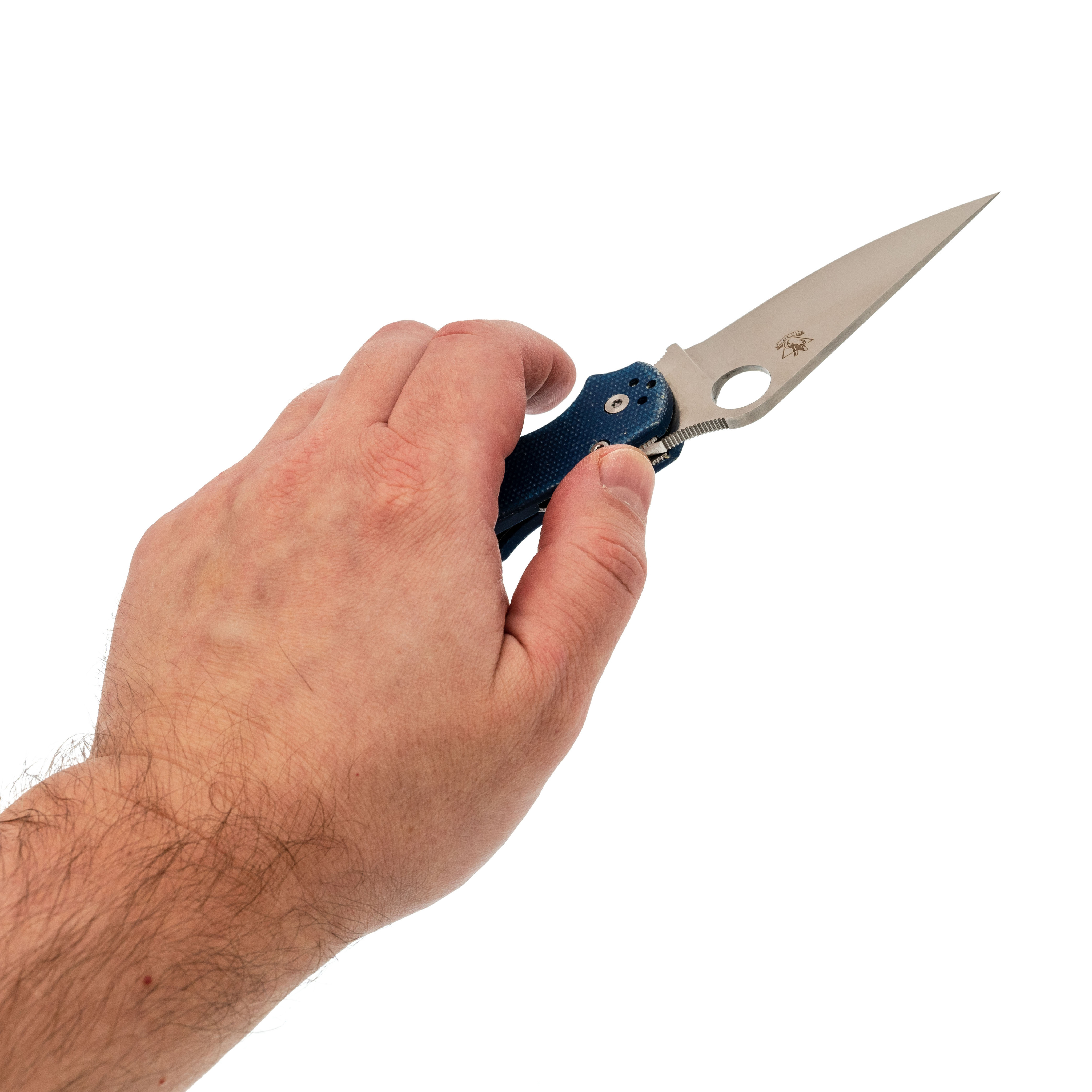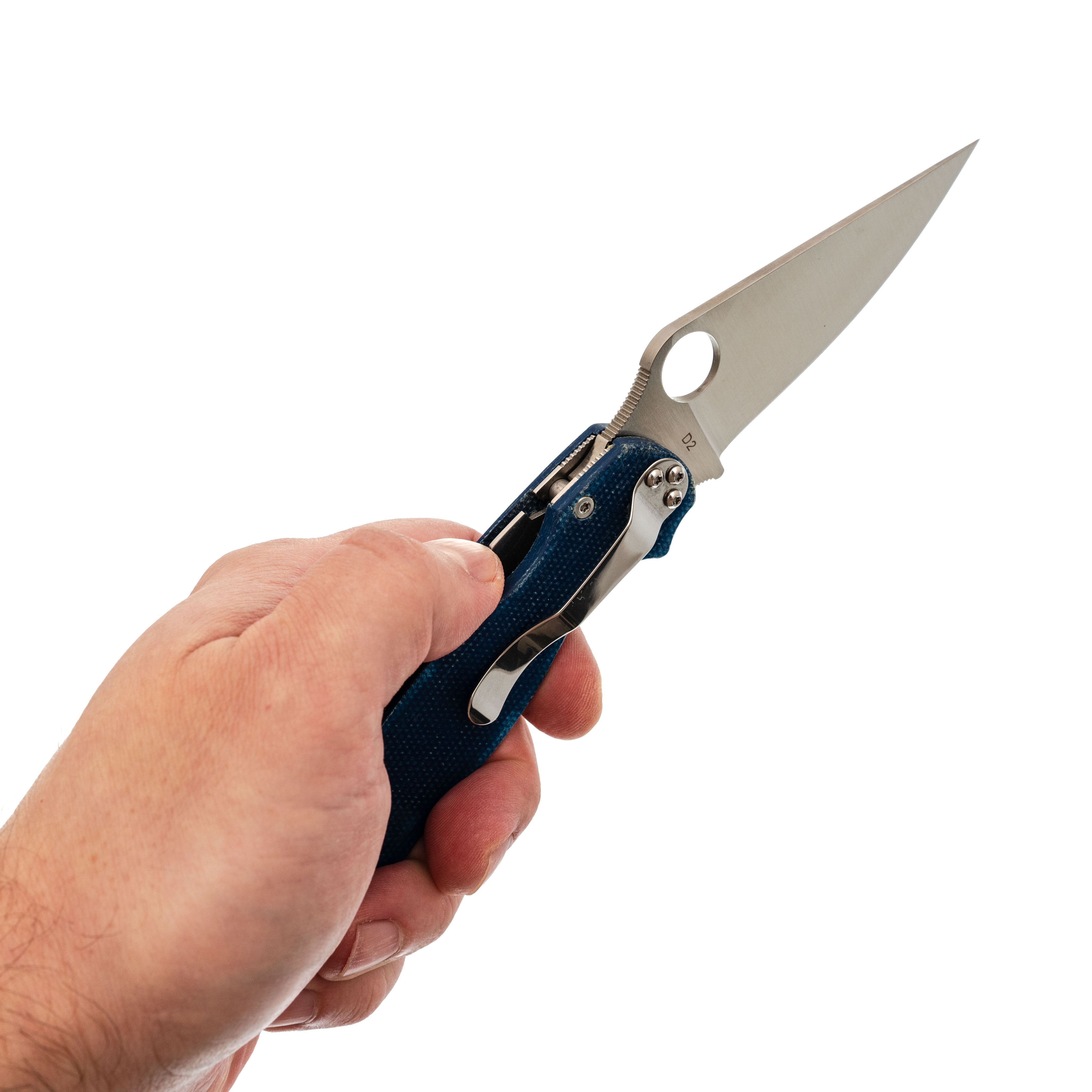 Клинок выполнен с геометрией тройного клина. Такая форма даёт лёгкий вход в материал и аккуратный, контролируемый рез. При этом стоит помнить: это история про точность и аккуратность, а не про силовые эксперименты и ковыряние. Отверстие в клинке позволяет открывать нож легко, как правой, так и левой рукой.