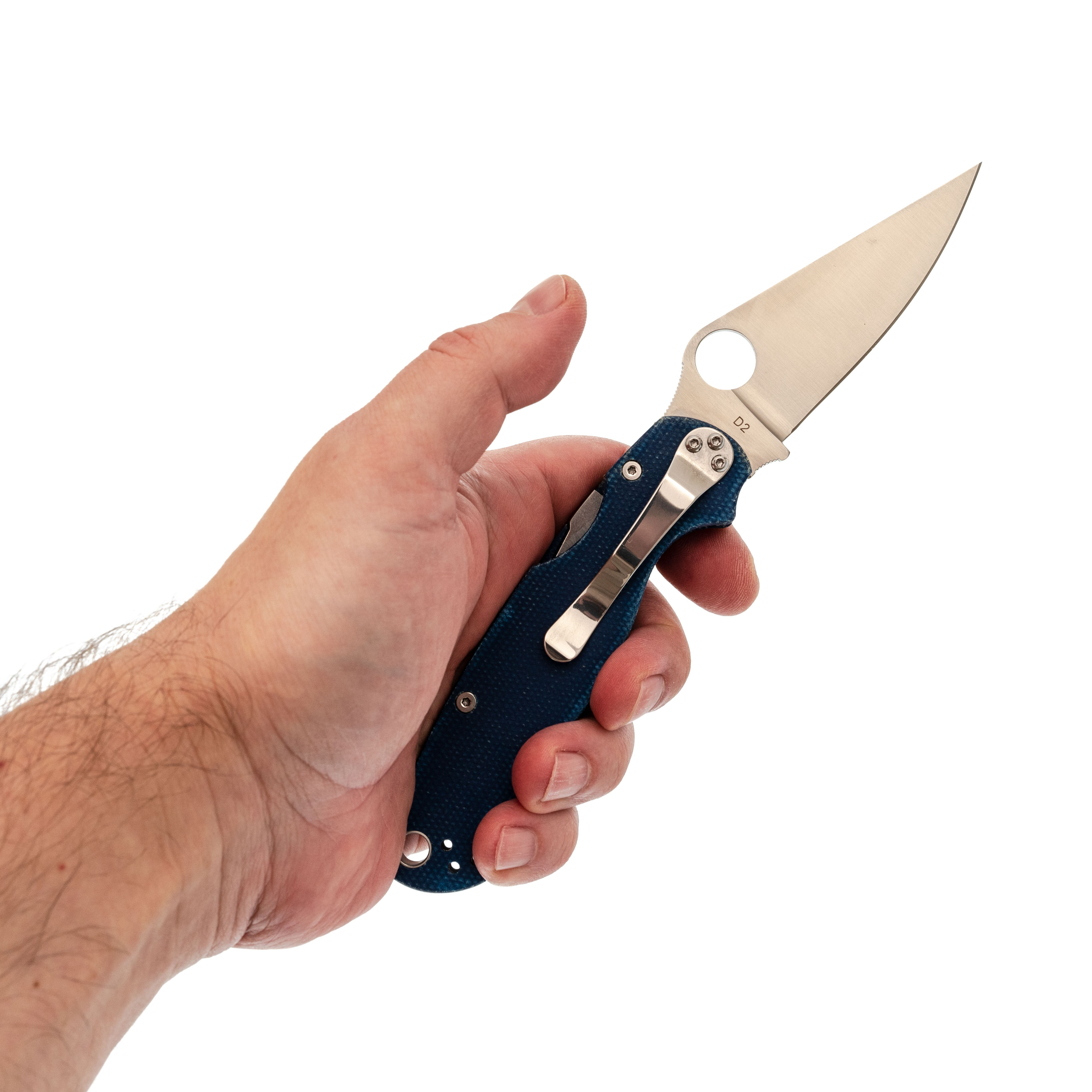 Сталь D2. Проверенный инструментальный сплав с хорошим удержанием остроты. Он долго работает без правки, уверенно справляется с резом по разным материалам и спокойно относится к активному использованию. Требует минимального ухода - достаточно не забывать протирать клинок после работы.