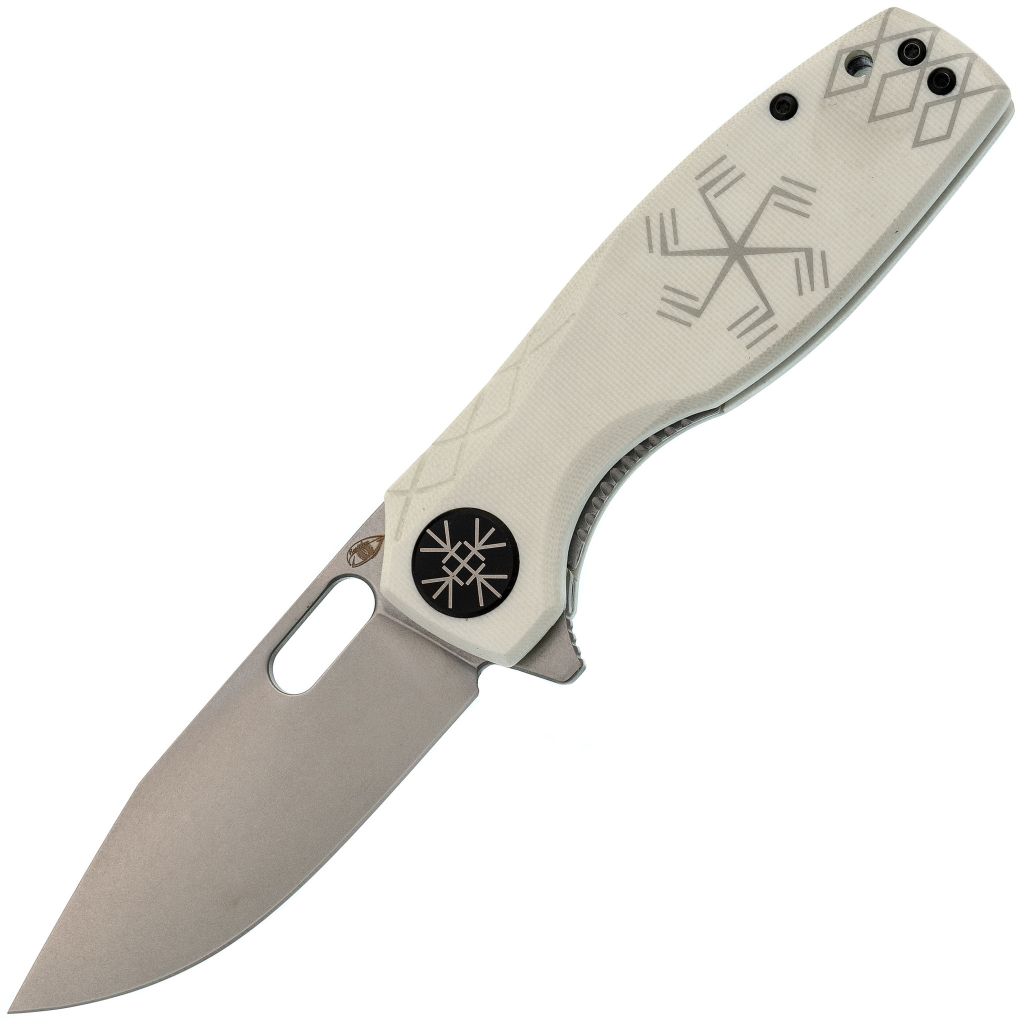 Reptilian Тобол-03 представляет собой складной нож средней величины с утилитарным дизайном, который отвечает всем требованиям практичности. Он не имеет излишней декоративности, что позволяет сконцентрироваться на его функциональности. Однако, несмотря на свою лаконичность, нож привлекает внимание интересной рунической символикой, которая становится неожиданным акцентом и добавляет уникальности этому повседневному инструменту. Нож идеально подойдет для тех, кто ценит простоту и одновременно не готов отказаться от индивидуальности.Клинок ножа выполнен из стали D2, которая известна своей высокой твердостью и способностью долго удерживать остроту. Clip-Point с прямыми спусками от обуха — универсальная геометрия, которая позволяет ножу легко справляться с различными задачами. Прямые спуски от обуха способствуют более лёгкому контролю при резке, а высокая твёрдость стали делает клинок долговечным. Открыть нож можно с помощью плавника или отверстия в клинке, что удобно для пользователей с разными предпочтениями в методах раскрытия ножа.Рукоять из стеклотекстолита G10 – это сочетание лёгкости, прочности и износостойкости, что делает её идеальным материалом для ножей, предназначенных для активного использования. Такой материал хорошо держит форму и не подвержен влиянию влаги или температурных изменений. Модель оснащена переставляемой клипсой с рисунком в виде рожицы, который добавляет ножу индивидуальности и лёгкости. Замок Liner-Lock обеспечивает надежную фиксацию клинка, что делает нож безопасным и удобным для повседневного использования.