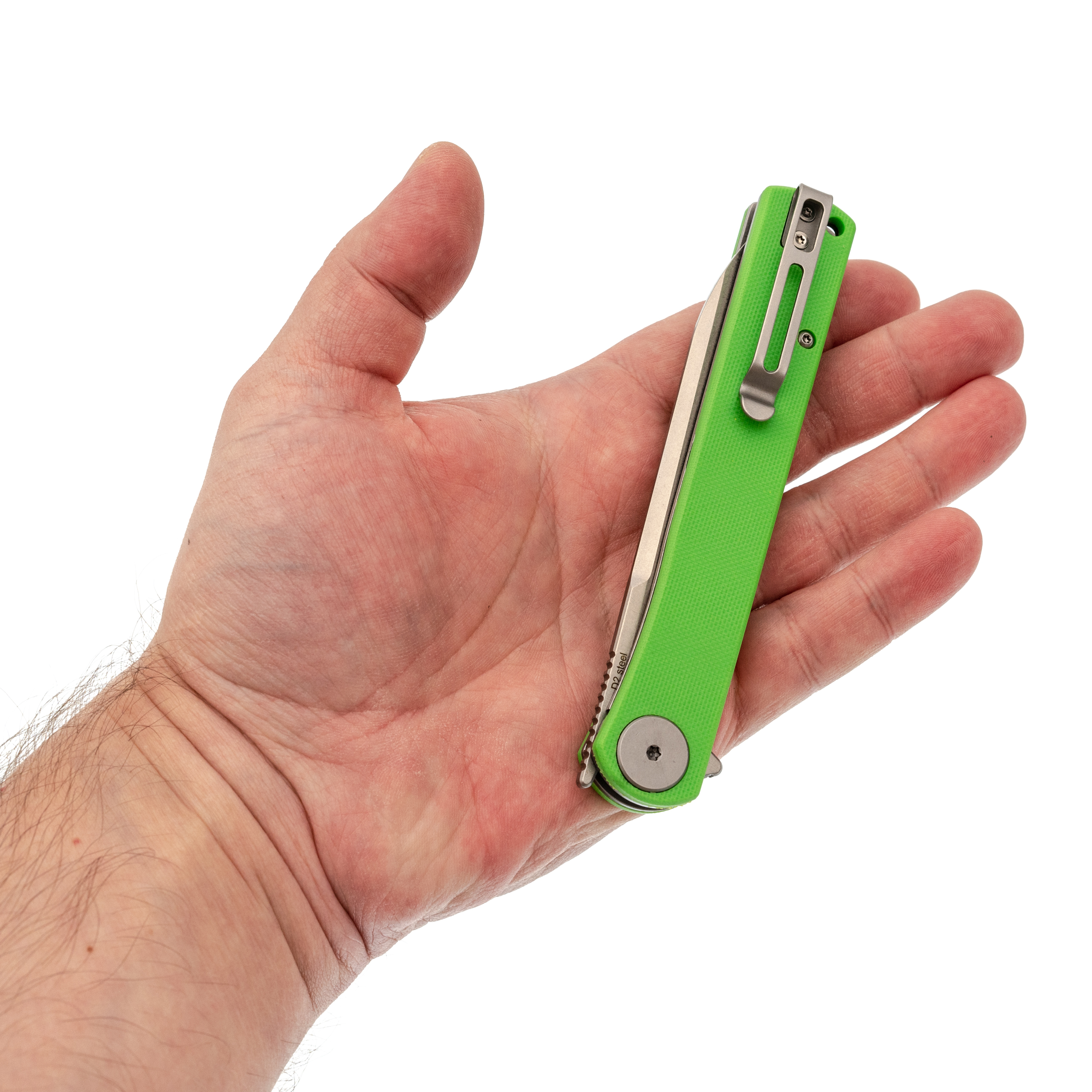 Сталь D2. Одна из самых популярных рабочих сталей. Закалённая до приличной твёрдости, она отлично держит заточку даже при активном использовании. Структура стали позволяет клинку быть вязким и не выкрашиваться на твёрдых материалах. Чуть больше внимания требует к влаге, чем обычная нержавейка, но за ту остроту, что держится неделями, это прощают.