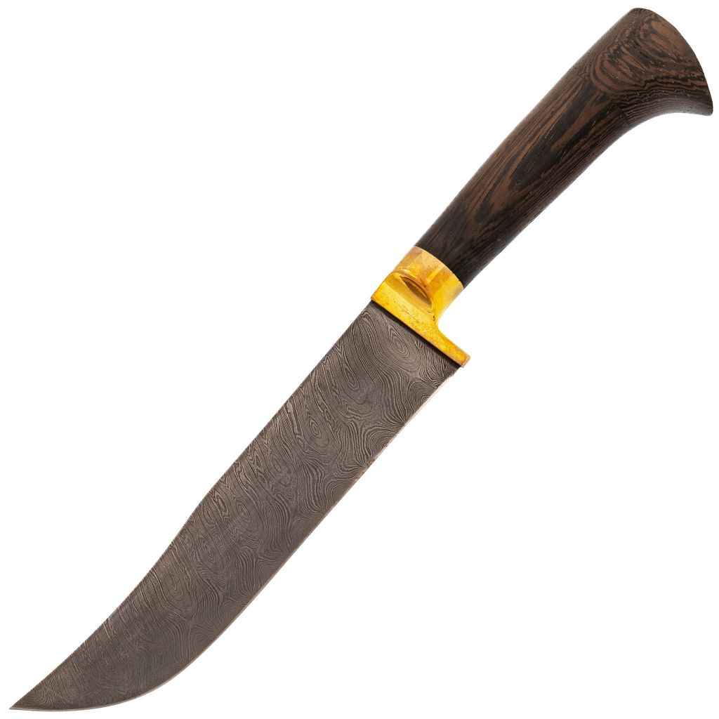 Пчак Узбекский из дамасской стали – представитель ножей среднеазиатских народов. По традиции он имеет прямой широкий клинок и круглую рукоять, которая крепится на уровне обуха и слегка расширяется к головке. Прямые спуски от обуха при достаточной толщине делают нож весьма универсальным как в туристических задачах, так и в готовке пищи. В комплекте к изделию идут широкие кожаные ножны. Кухонный нож пчак Узбекский прекрасно подходит для разделки мяса, нарезки овощей и считается хорошим подарком мужчине.
