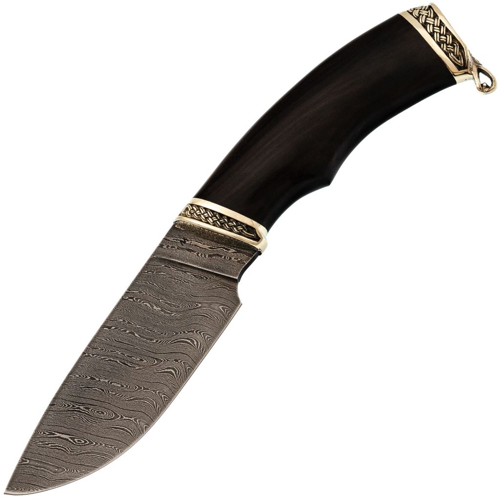 Разделочный нож от мастерской Сёмина - это высококачественный инструмент, сочетающий в себе функциональность и эстетику. Клинок изготовлен из нержавеющего дамаска, обеспечивая идеальную геометрию с прямыми спусками, что делает его идеальным для разделки мяса. Широкий клинок не только красивый, но и практичный.Рукоять из натурального граба обладает уникальной текстурой и прочностью. Её изогнутая форма обеспечивает удобство и комфорт при работе. Мельхиоровые детали - больстер и навершие - придают ножу изящный вид, контрастируя с тёмной древесиной. Клинок надежно закреплен методом всадной конструкции, обеспечивая прочное и удобное соединение.Комплект дополняют кожаные ножны с художественным тиснением, обеспечивающие безопасное хранение и удобство ношения. Подвес на ножнах позволяет легко прикрепить нож к поясу или рюкзаку. Этот нож - отличный выбор для профессионалов и любителей, сочетающий в себе практичность и привлекательный внешний вид.