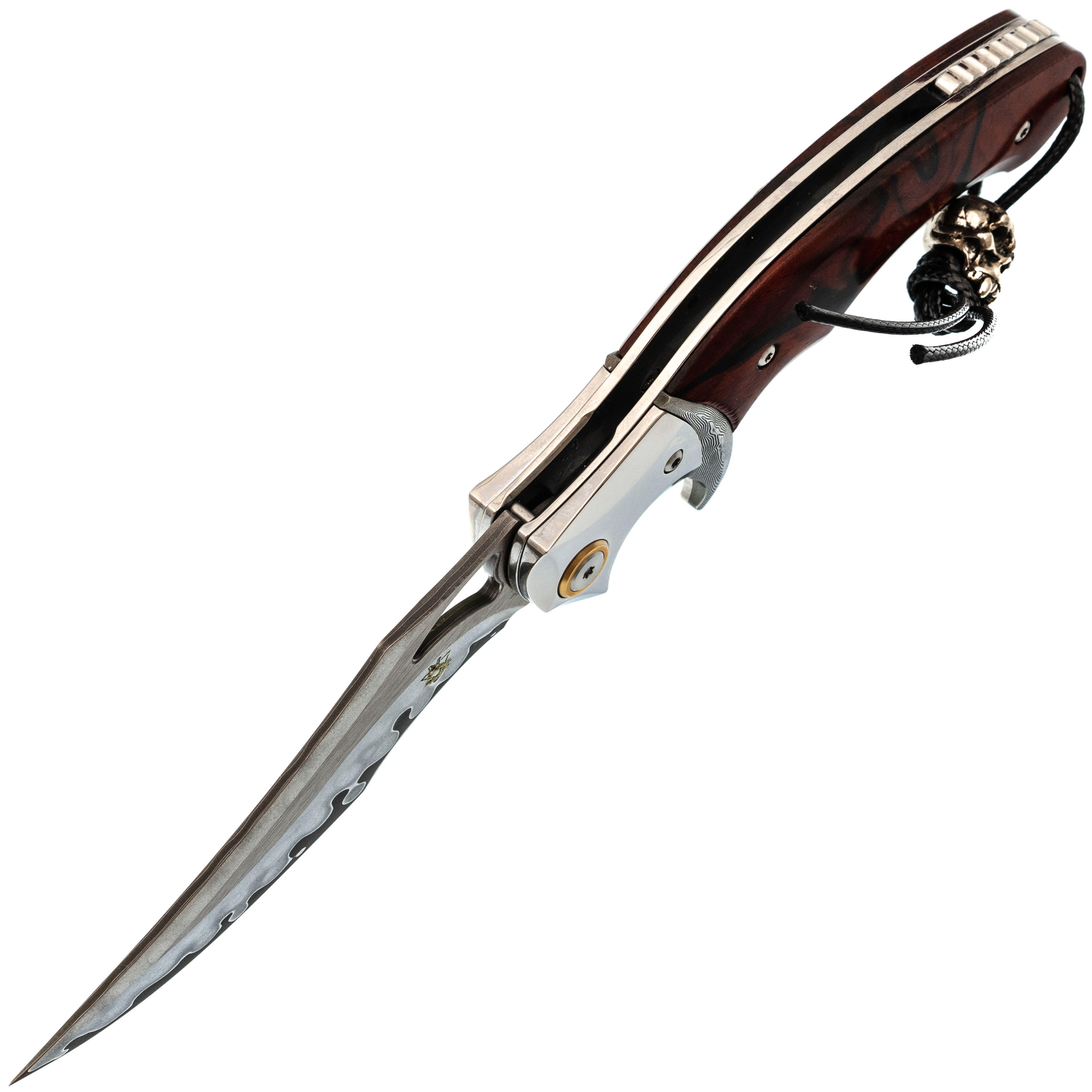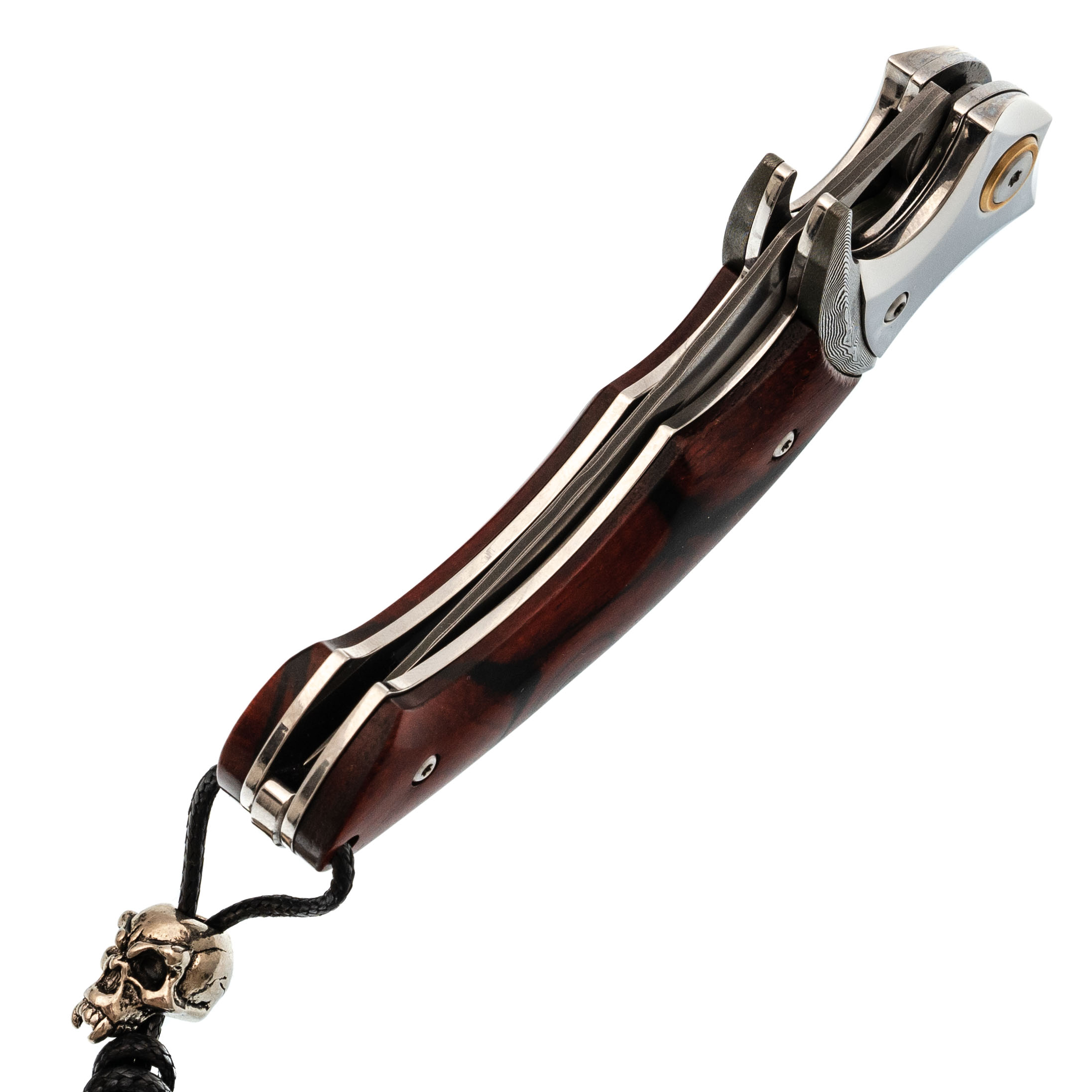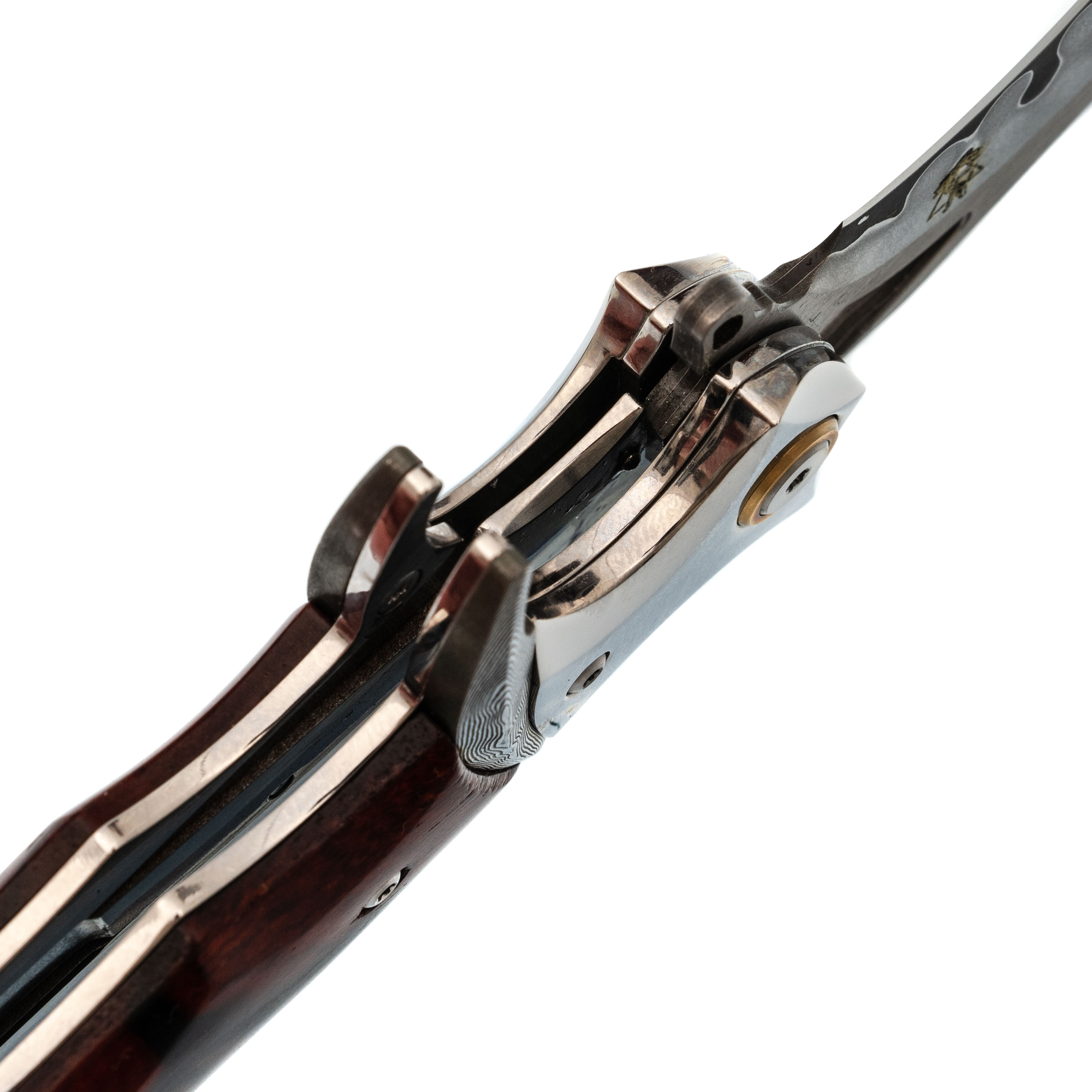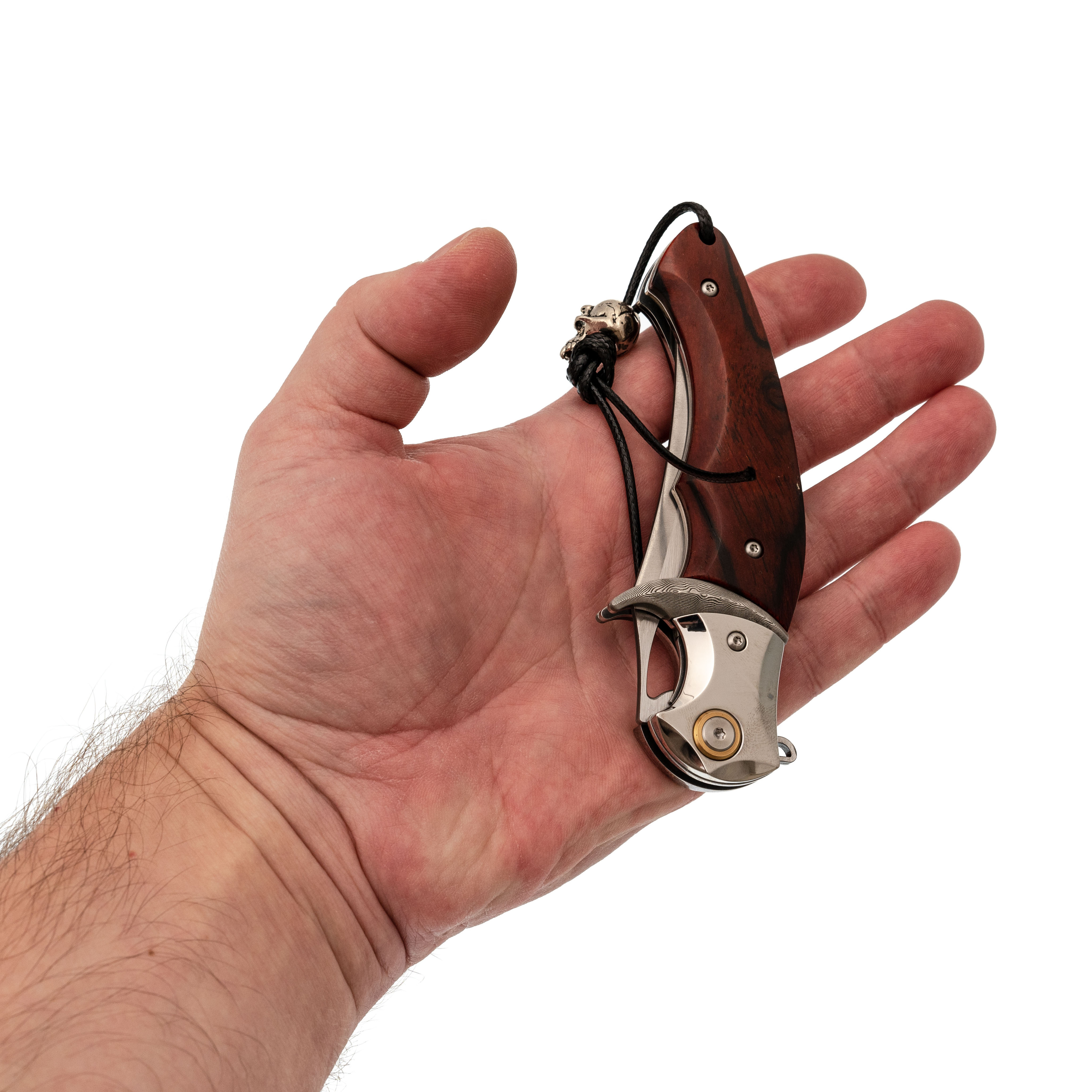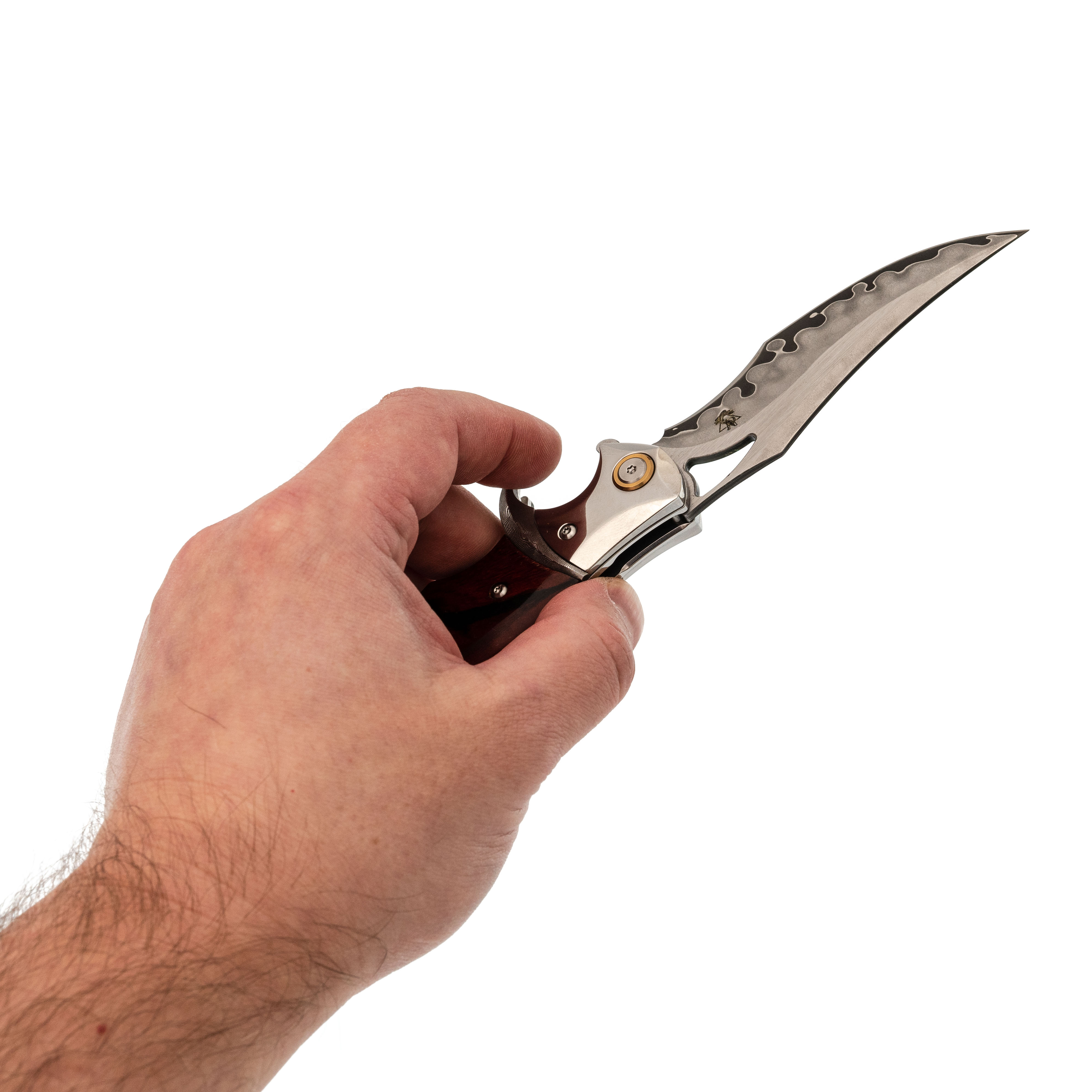 Рукоять: сталь и палисандр (Rose wood)Стальные элементы дают жёсткость конструкции, а палисандр приятен в руке, не холодит и со временем только выигрывает по внешнему виду.