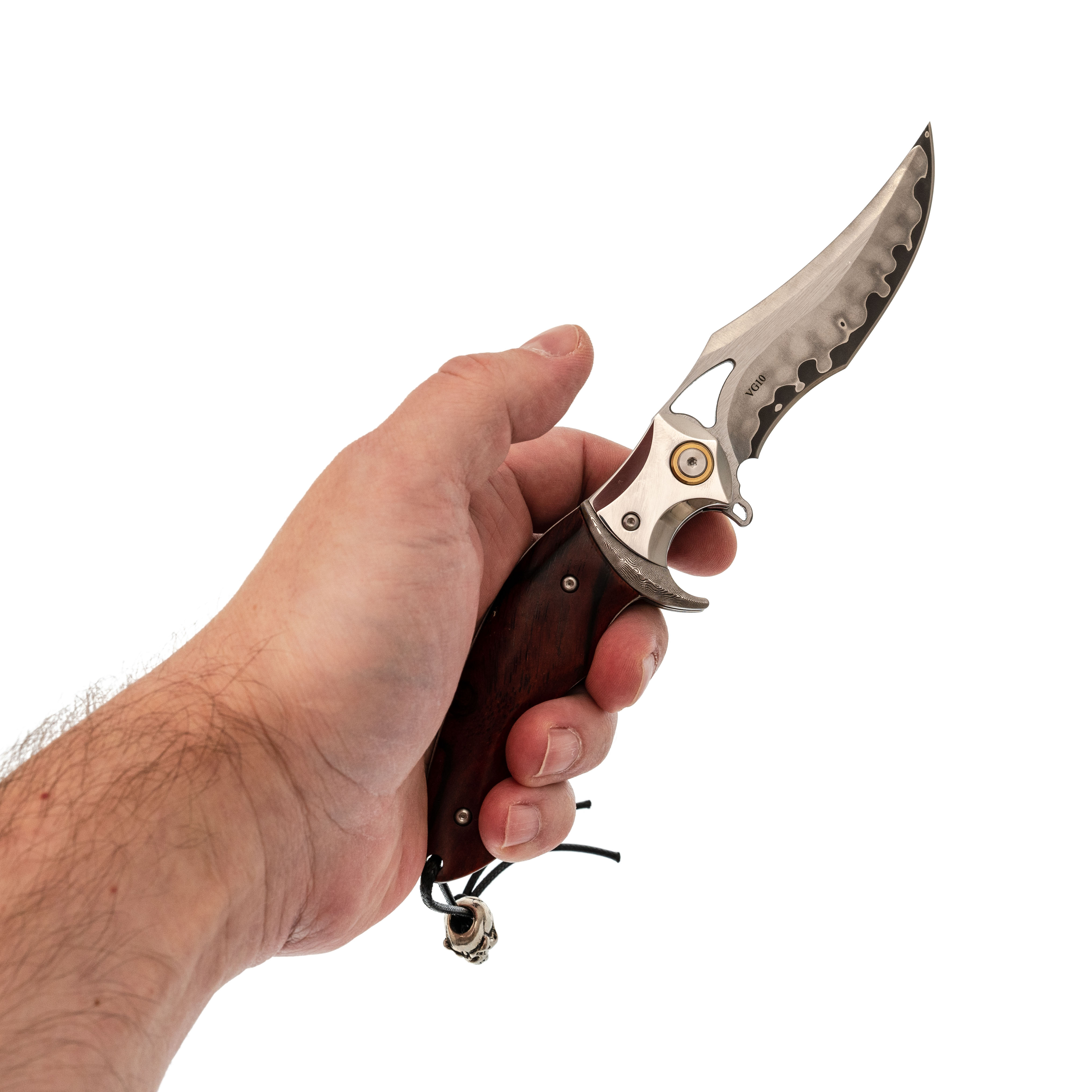 "Запад" от Steelclaw - крупный складной нож с характером. В его силуэте легко читаются восточные мотивы: вытянутый профиль, плавные линии, спокойная, уверенная геометрия. Это нож для тех, кто ценит выразительный дизайн и рабочую логику, когда форма сразу подсказывает, как инструмент поведёт себя в деле.
