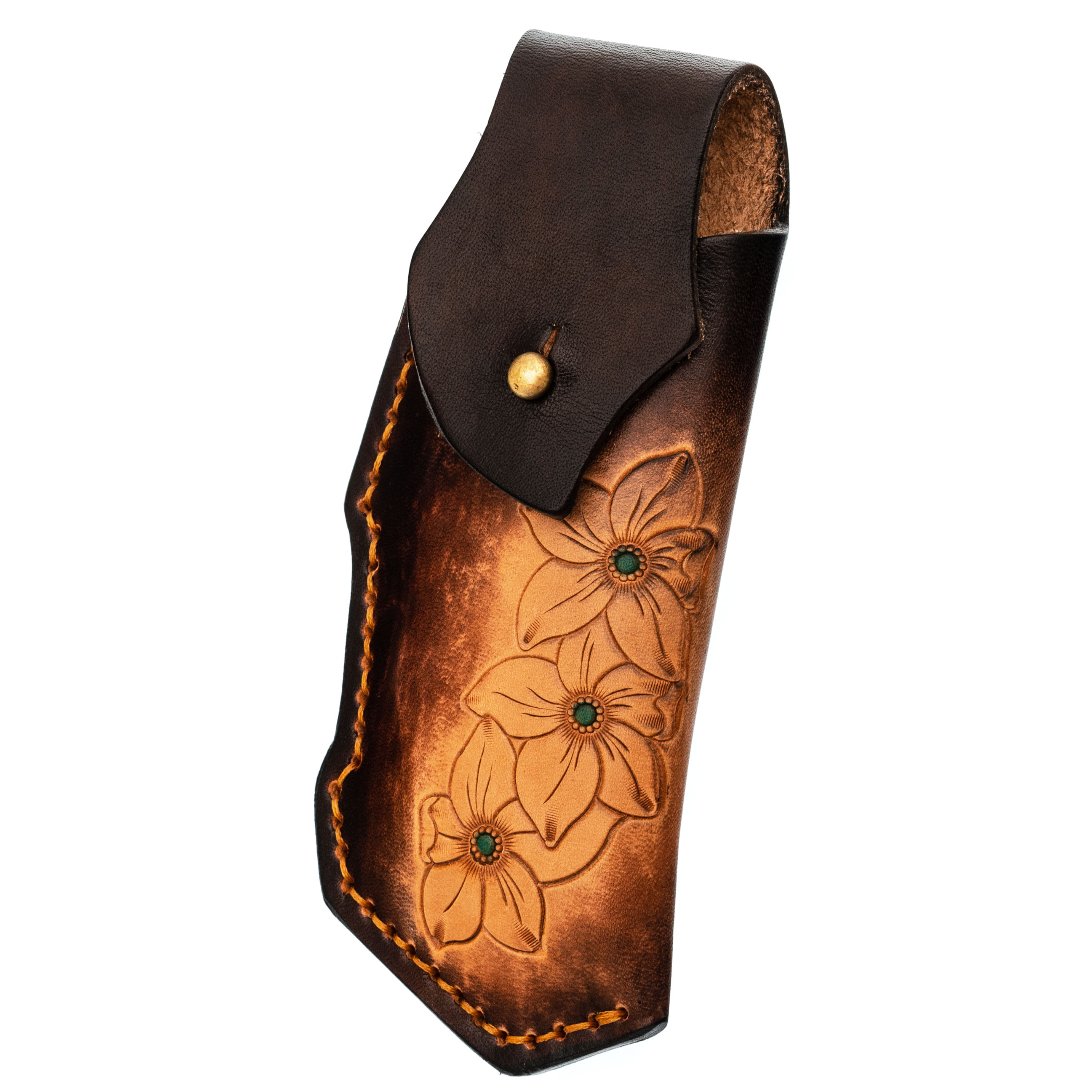 Клипсы для кармана нет, зато в комплекте идёт кожаный чехол для ношения на ремне. Чехол с клапаном на пукле надёжно удерживает нож и подходит для повседневного использования.