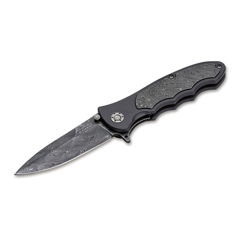 Складной нож Leopard-Damast III Collection, сталь дамаск, 97 мм отличается компактным дизайном. Этот нож легок и мал для удобной переноски и резки и обрезки на ходу. Сталь клинка продолжается по всей рукояти, что предотвращает поломку и равномерно распределяет вес. Лезвие Drop Point из дамаска Boomerang от Chad Nichols. Рукоять из углеродного волокна Silver Fat Carbon Space Coral. Черные кожаные ножны с креплением Ulti-Clip и отверстием для шнурка.