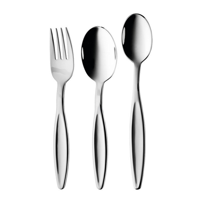 Набор детских столовых приборов специально разработан для детей младшего возраста. Размеры, форма и внешний вид продуманы до мелочей. Выполнены из высококачественной нержавеющей стали 18/10. Набор состоит из одной вилки и двух ложек разной длины.