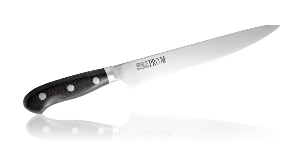 Слайсер - это специальный тип кухонного ножа, предназначенного для нарезки тонких ломтиков колбасы, сыра и других подобных продуктов. Поэтому такие ножи обладают специальной геометрией - не широкий клинок позволит продуктам меньше прилипать, а большая длина позволит отрезать кусок за одно движение руки.Клинок изготовлен из японской нержавеющей стали DSR1K6, которая известна своей легкостью в заточке и устойчивостью к ржавчине. Высокая ударная вязкость материала предотвращает трудно исправимые дефекты режущей кромки. Нож заточен вручную мастерами Kanetsugu, финишная заточка выполнена на камне #8000, что обеспечивает невероятную остроту режущей кромки.Рукоять ножа изготовлена из ламинированного дерева, которое не боится воды и не впитывает запахи. Это обеспечивает не только долговечность рукояти, но и легкость в уходе за ножом.