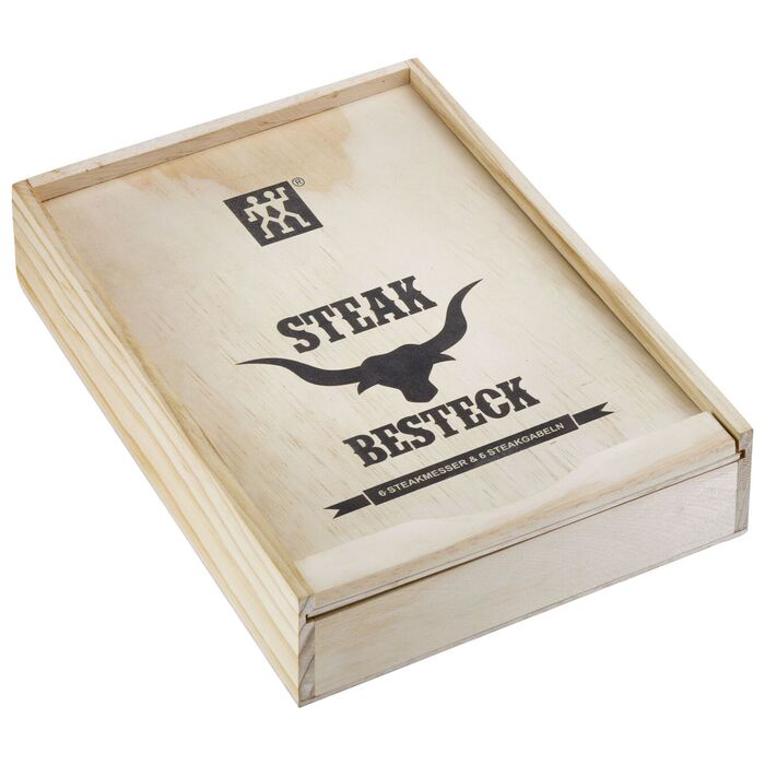 Подготовка к летнему барбекю с друзьями чрезвычайно важна, и подбор качественных столовых приборов позволит в полной мере насладиться сочными стейками и атмосферой у костра. Вилка удобно зафиксирует, а нож с легкостью разрежет стейк на маленькие ломтики. Для всех, кто хочет поистине наслаждаться ярким вкусом и ароматом, нержавеющая сталь 18/10 – это идеальный материал, который обладает отменными антикоррозийными свойствами, не видоизменяется со временем и не окисляется, имеет высокую прочность и устойчивость к повреждениям. Поверхность набора идеально отполирована и имеет удобную форму, благодаря чему прекрасно ложится в ладонь и оставляет приятные тактильные ощущения. Изделия Specials отлично сохраняют свой внешний вид после мытья в посудомоечной машине. Набор для стейков размещен в презентабельной деревянной упаковке в стиле Дикий Запад. Набор Specials - идеальный подарок для дорогого Вам человека, друга, коллеги или начальника.