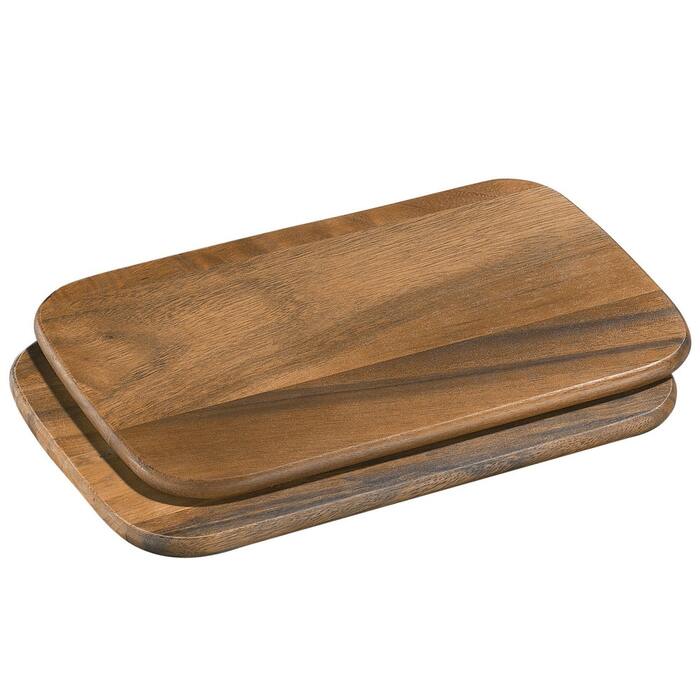 Набор Zassenhaus - идеальное сочетание качества и функциональности в одном флаконе. Набор впечатляет своим широким спектром применения и состоит из 2 разделочных досок, которые могут использоваться в качестве подноса для подачи легких закусок и бутербродов. Набор изготовлен из экологически чистой древесины акации, которая отличается особой прочностью и станет идеальным дополнением интерьера современной и классической кухни. Для очищения необходимо промыть изделие под теплой мыльной водой.