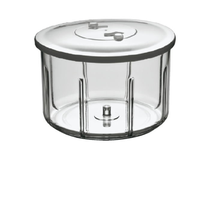 Данная емкость является частью универсального измельчителя Rosle (арт. 16272). Крышка защищает от ударов и царапин, дно имеет антискользящее покрытие. Благодаря специально приспособленной крышке вы сможете использовать емкость для дальнейшего хранения продуктов в холодильнике, они буду оставаться свежими длительное время.