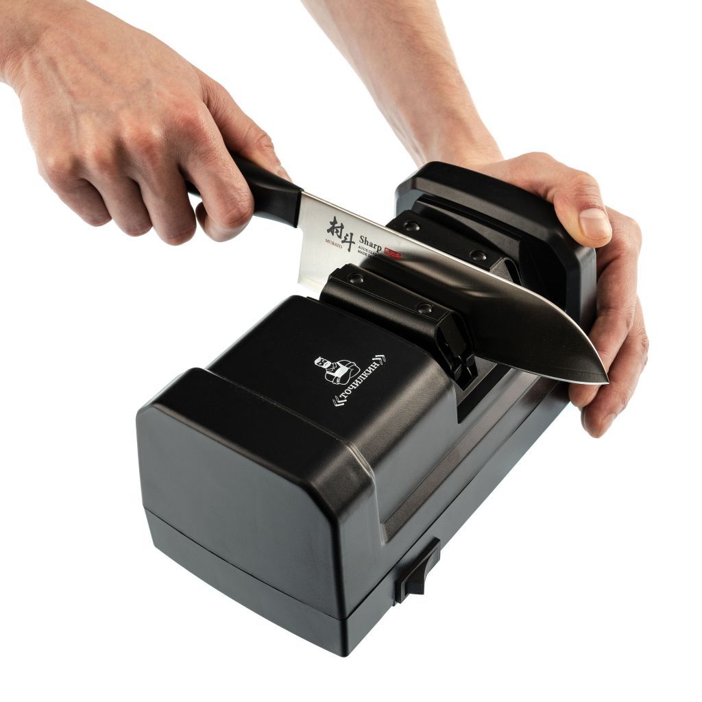Электрическая алмазная точилка Точилкин T-35 заточит ваши любимые кухонные ножи и подарит им вторую жизнь. Точилка стильного черного цвета легко впишется практически в любой интерьер.