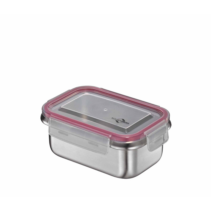 Ланчбокс Kuchenprofi идеально подходит для хранения продуктов на работу или поезду. Коробку можно наполнить орехами, сухофруктами и дольками яблока и другими полезными перекусами. Размеры бокса позволяют положить его в большую сумку или рюкзак. Емкость бокса изготовлена из нержавеющей стали, а крышка – из пластика. Нержавеющая сталь не влияет на вкус продуктов. Емкость можно мыть в посудомоечной машине. Пластиковая крышка имеет силиконовый уплотнитель. Благодаря этому она плотно закрывается и не впитывает запахи в холодильнике.