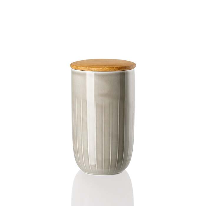 Joyn – коллекция фарфоровой посуды бренда Arzberg с фактурными элементами под старину. В нее входят тарелки, миски, кувшины, емкости для хранения сыпучих продуктов, а также чашки с ручками и без них. Коллекция выполнена в пастельных оттенках мятно-зеленого, серого, розового и белого цвета. Банка из коллекции Joyn подойдет для хранения сухих сыпучих продуктов: соли, чая, кофе, макарон или круп. Крышка сделана из дуба, а подкладка для нее – из силикона.